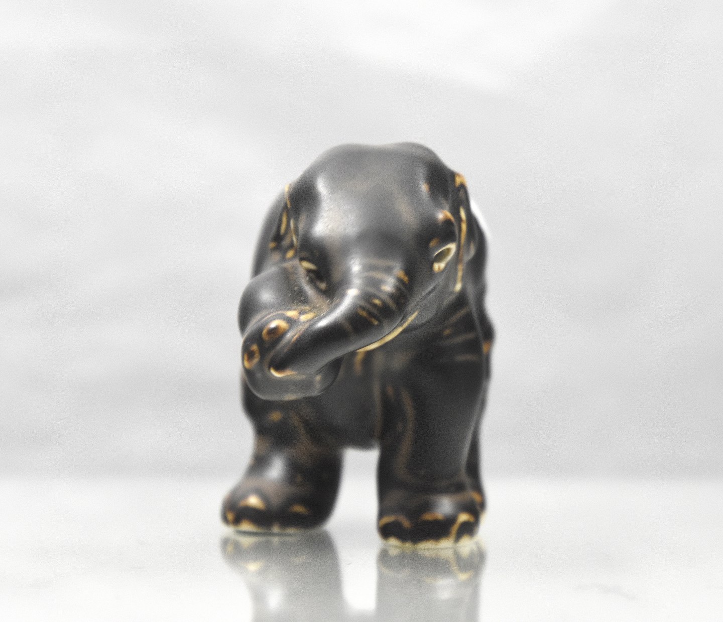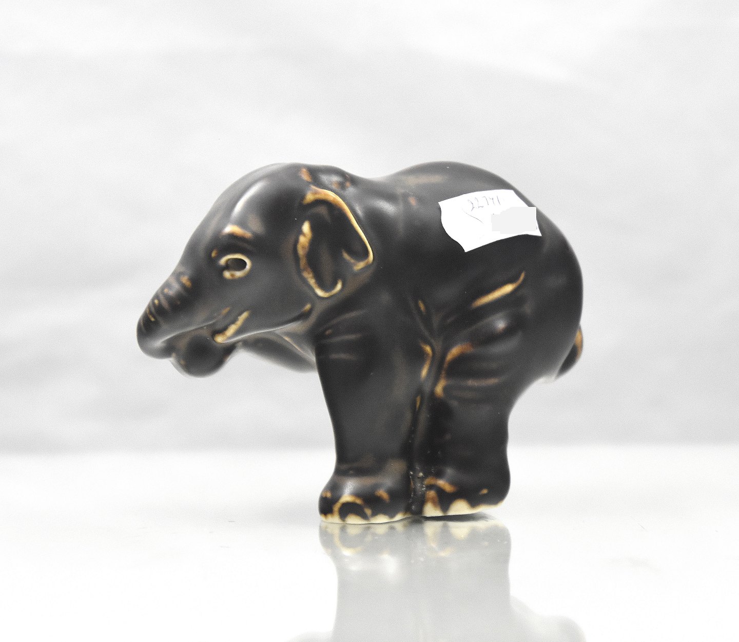 Royal Copenhagen. Stentøjs elefant, der står med løftet forben. Elefanten er brun glaseret. Nr. 22741. 1. sortering