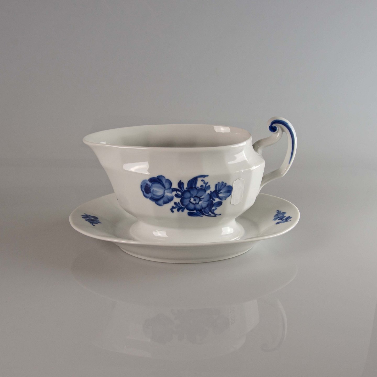 Blå blomst kantet sauceskål med hank nr. 10/8537