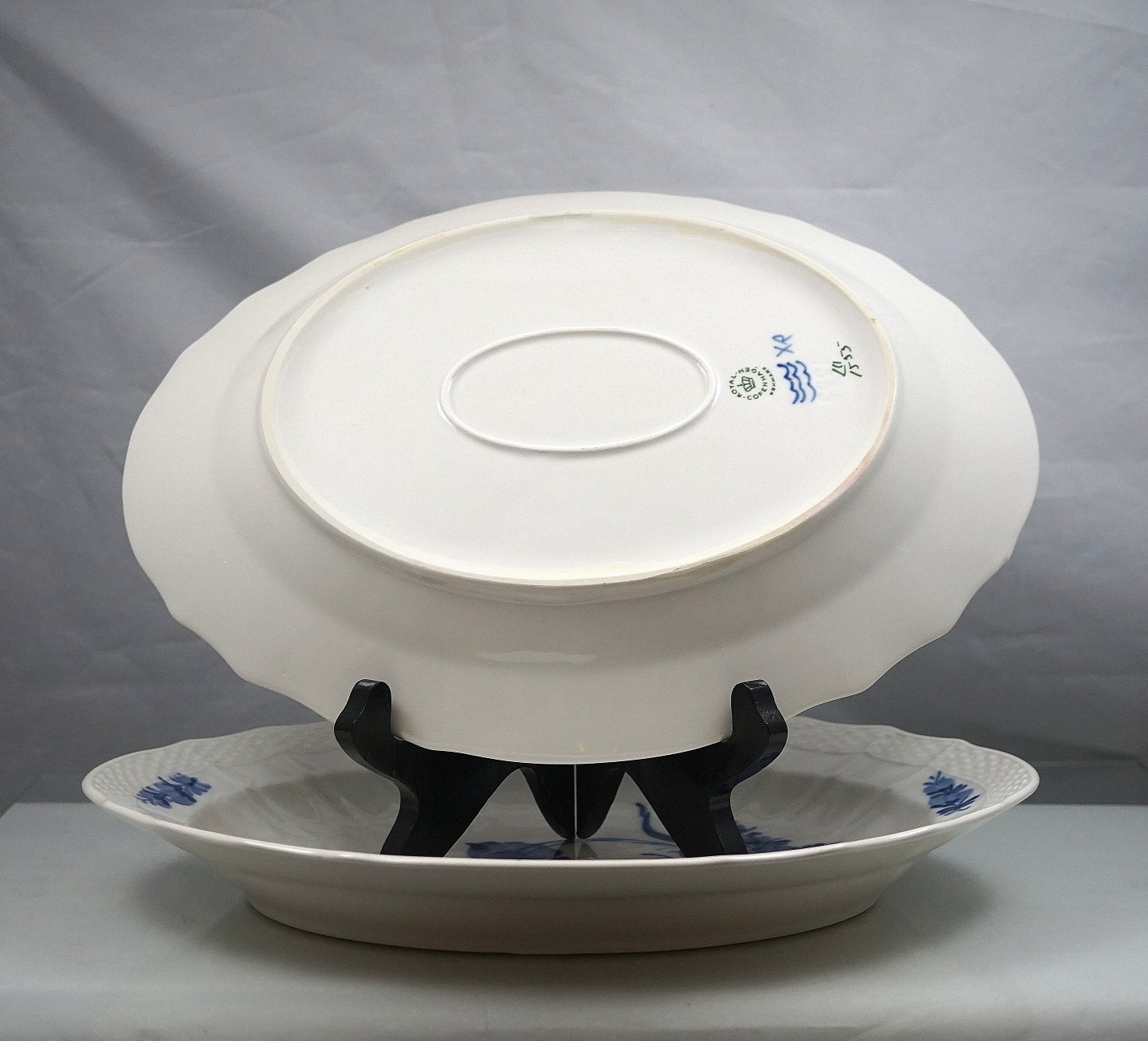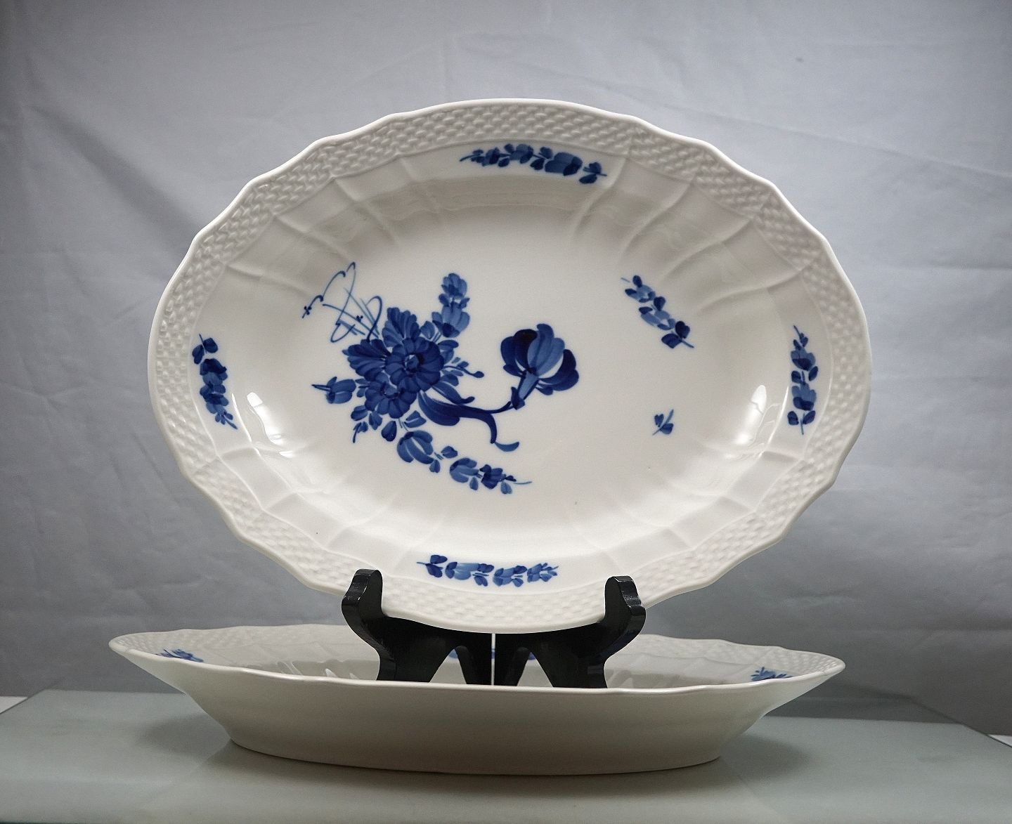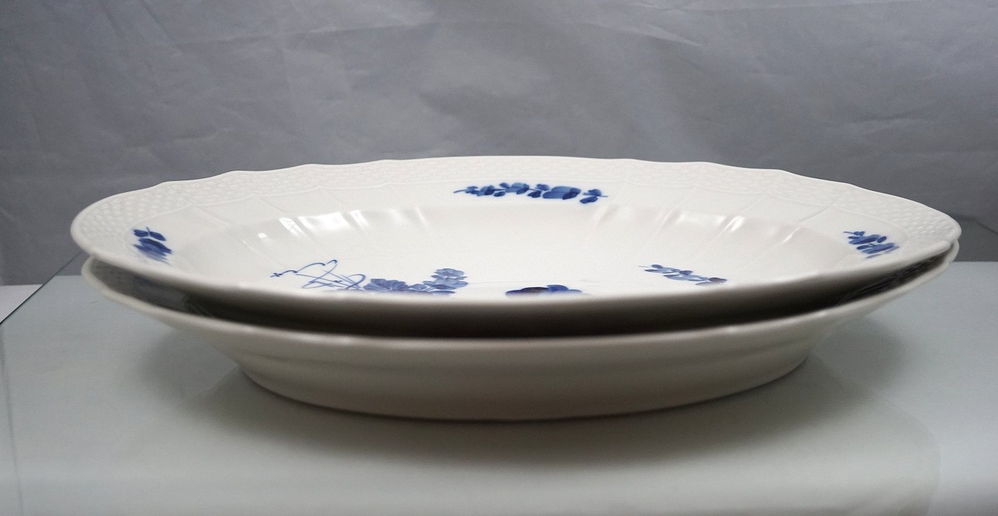 Royal Copenhagen svejfet Blå blomst, nr. 10/1555, stegefad med flettet-kant.