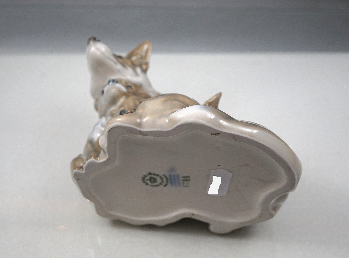 Royal Copenhagen, RC., Den kongelige Porcelænsfabrik, KGL., Kongelig, porcelæn, figur, rævemor, unger, mikkelræv