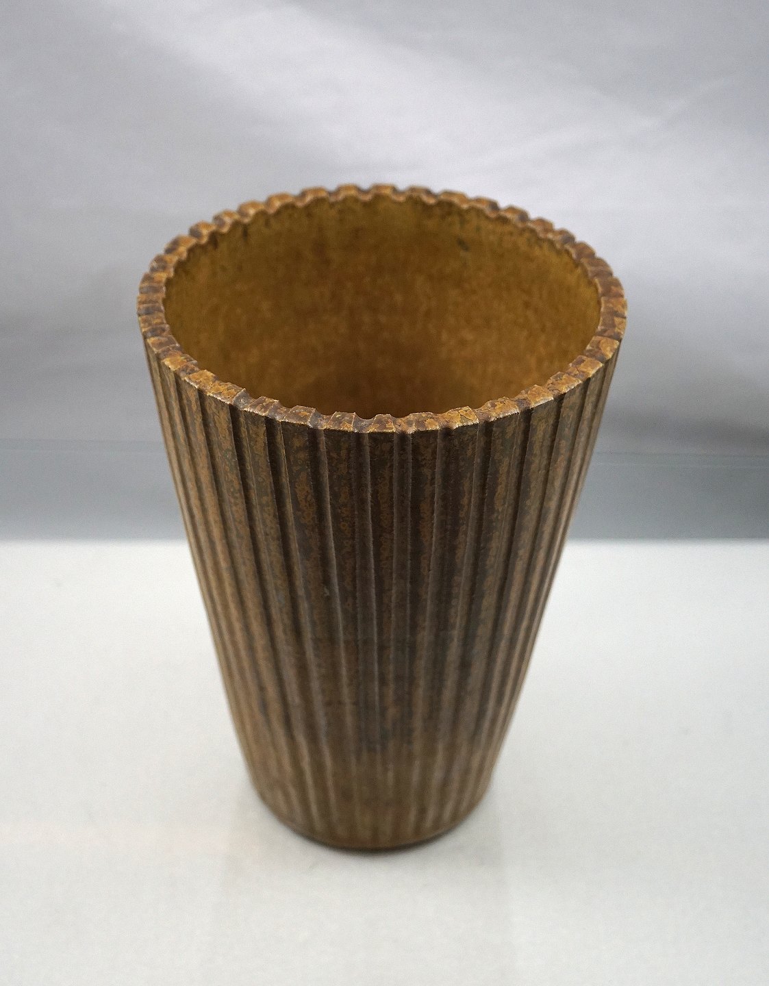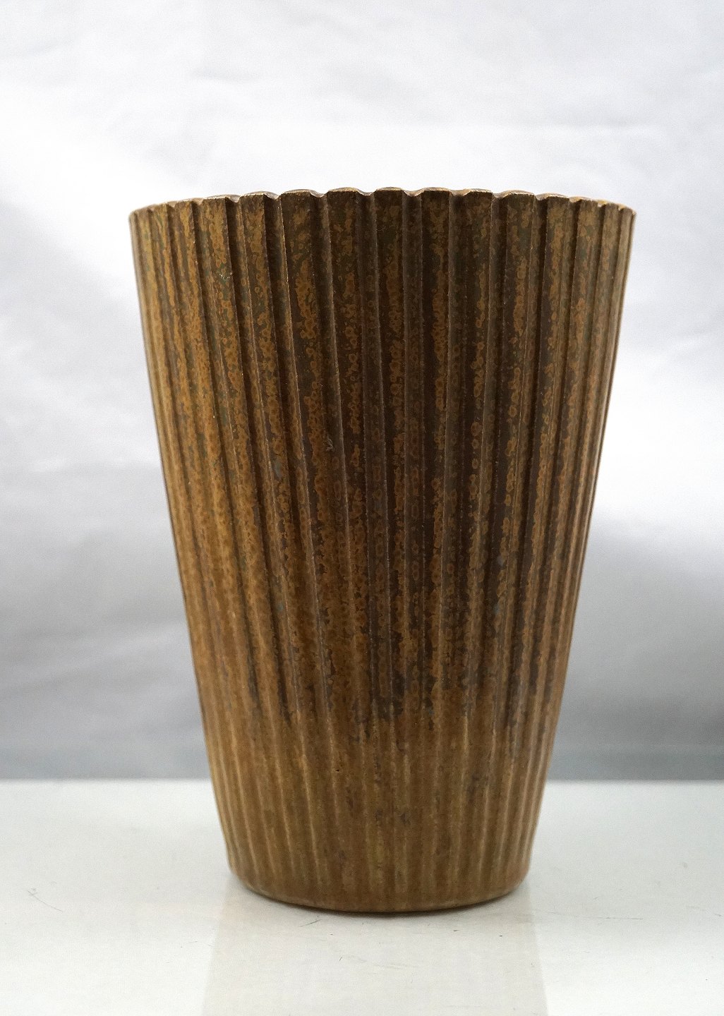 Arne Bang, riflet, konisk vase med sung glasur