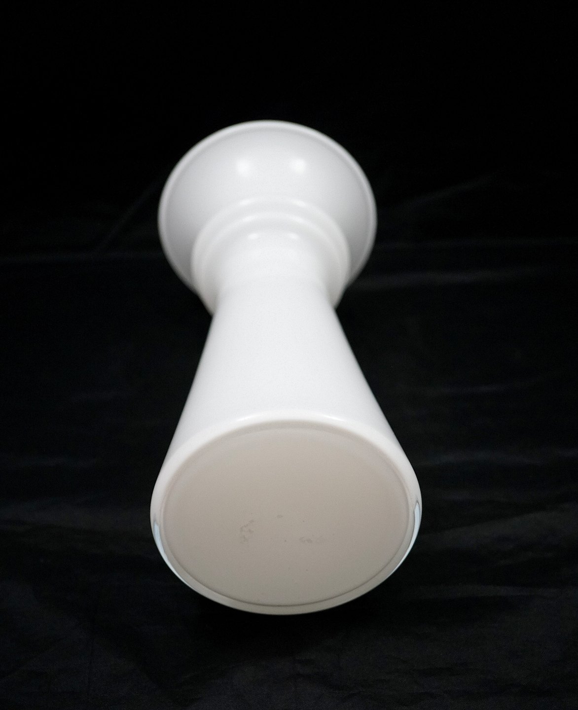 Holmegaard Glasværk. Harmony vase af opalhvidt glas med krystalglas som overfang, vasen har udsvejet kant.