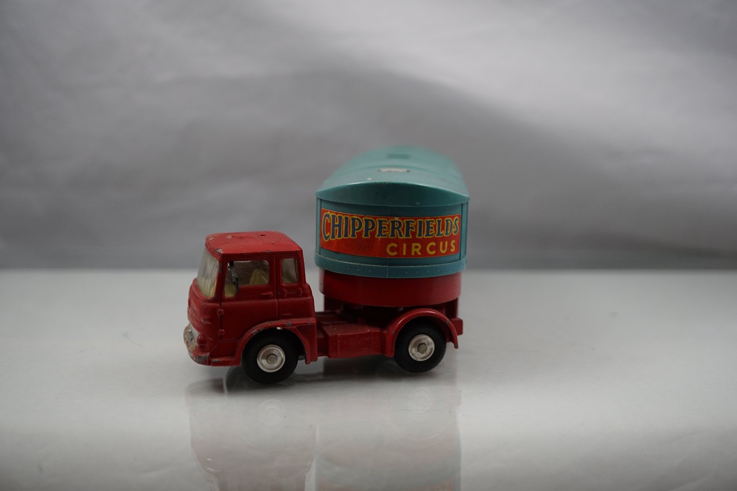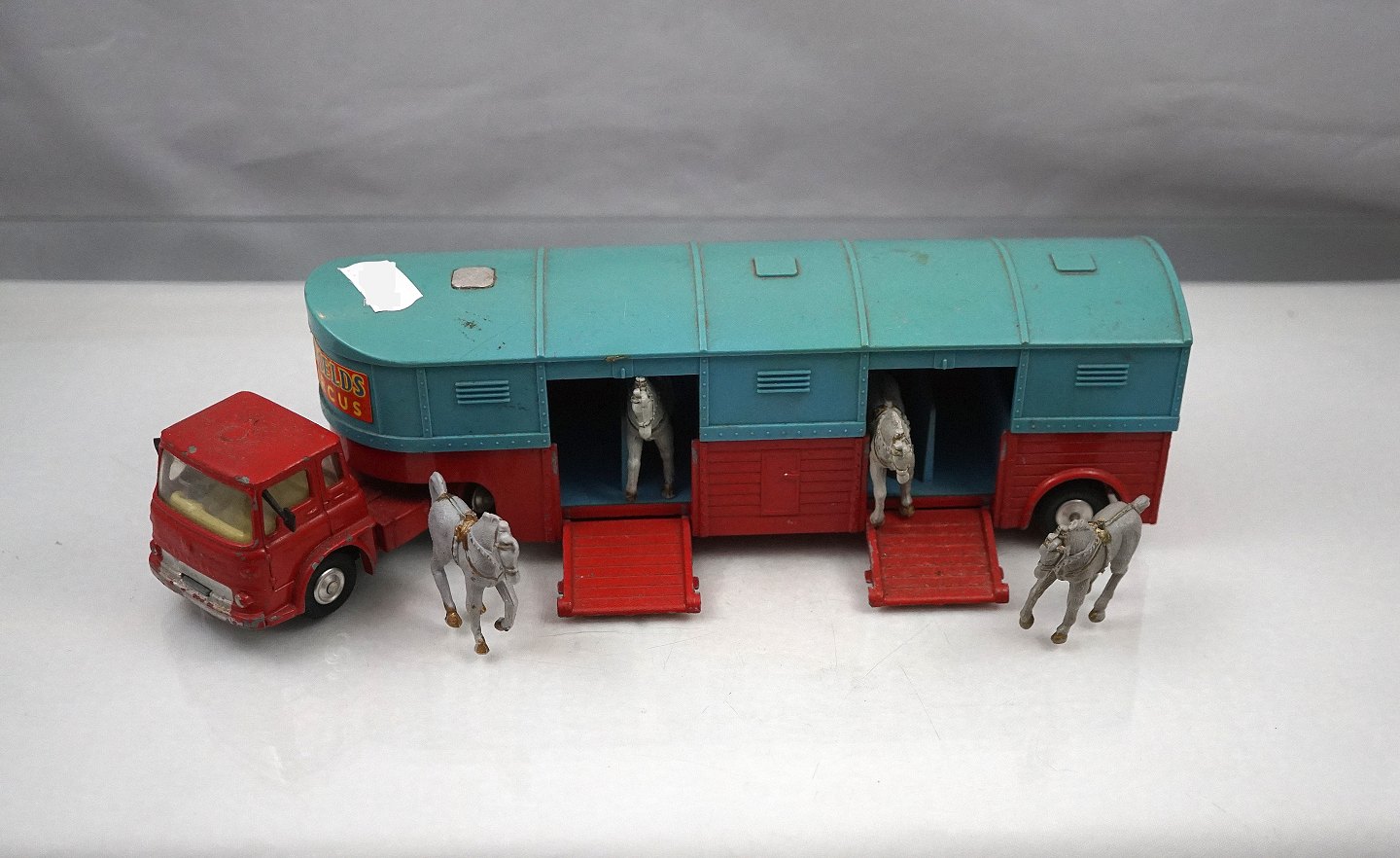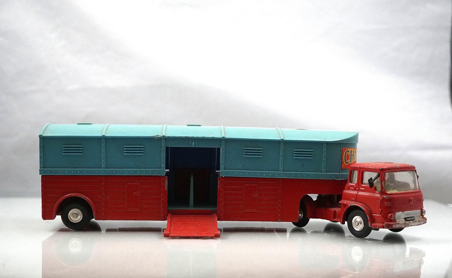 Corgi Toys Major No 1130 Bedford Articulated Horse Box - Chippenfields Circus. Lastbilen har begge sidespejle med 4 heste