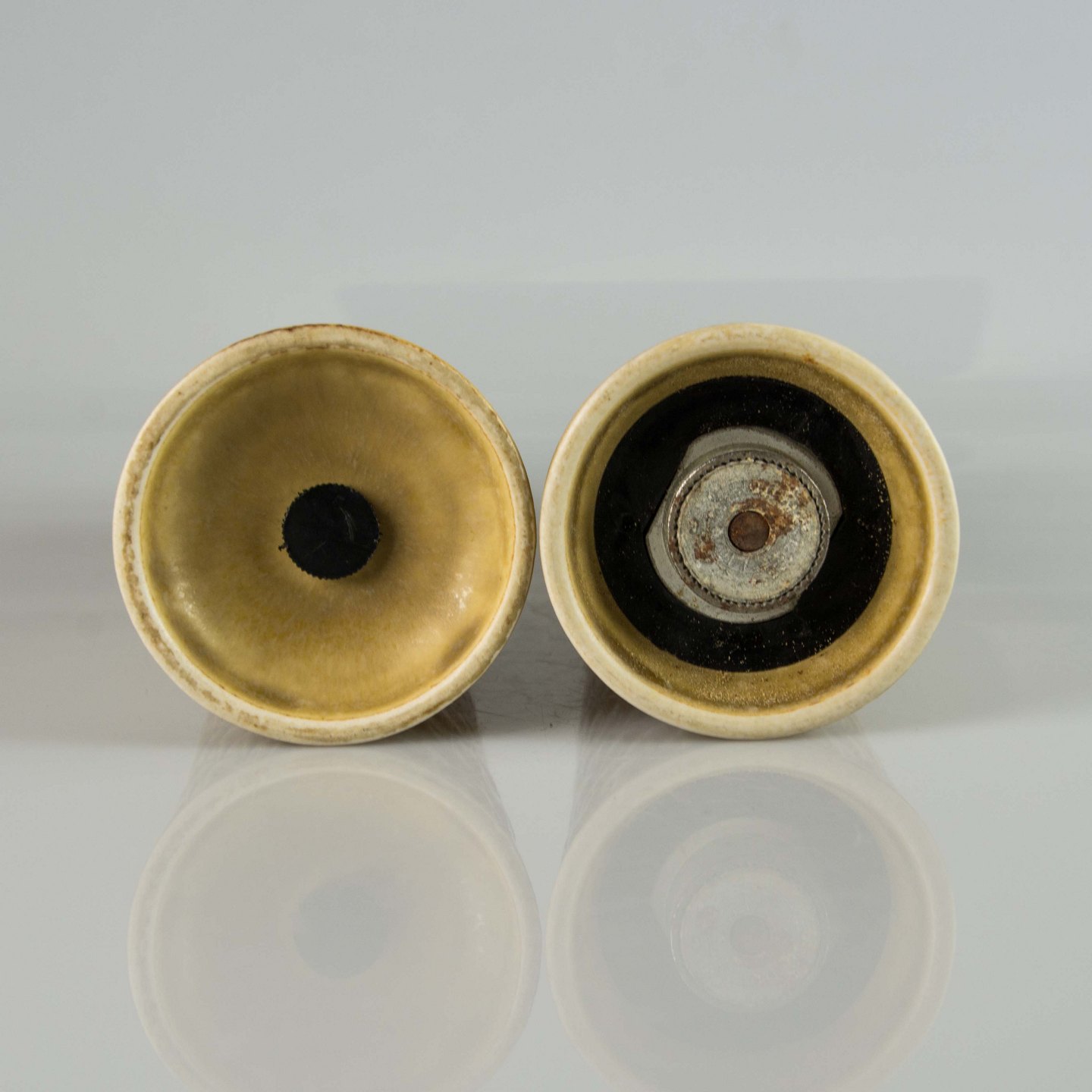 Saltbøsse og peberkværn i stentøj fra stellet Relief