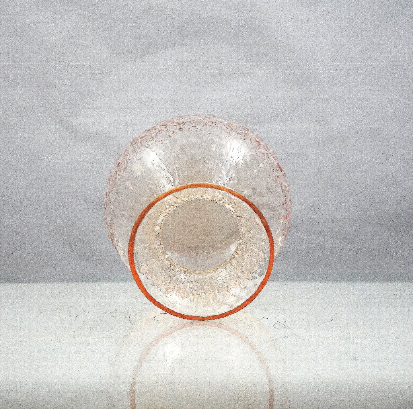 Holmegaard Glasværk. Rosa hyacint glas, kugleformet krakaleret optik.