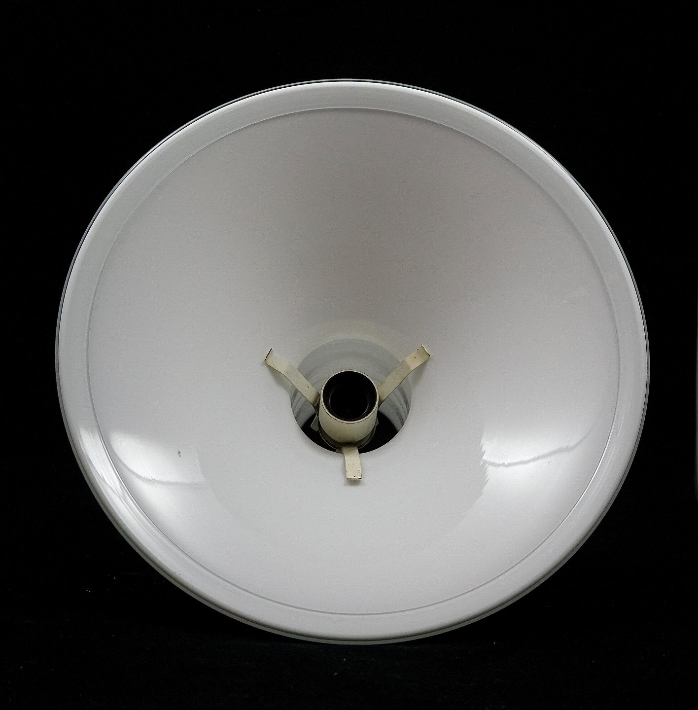 Holmegaard Glasværk. Apoteker loftslampe, hvidt opalglas med klart overfang, Arkivfoto