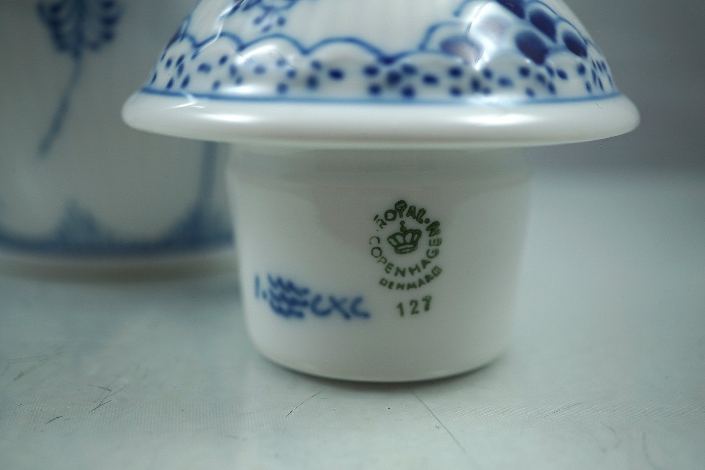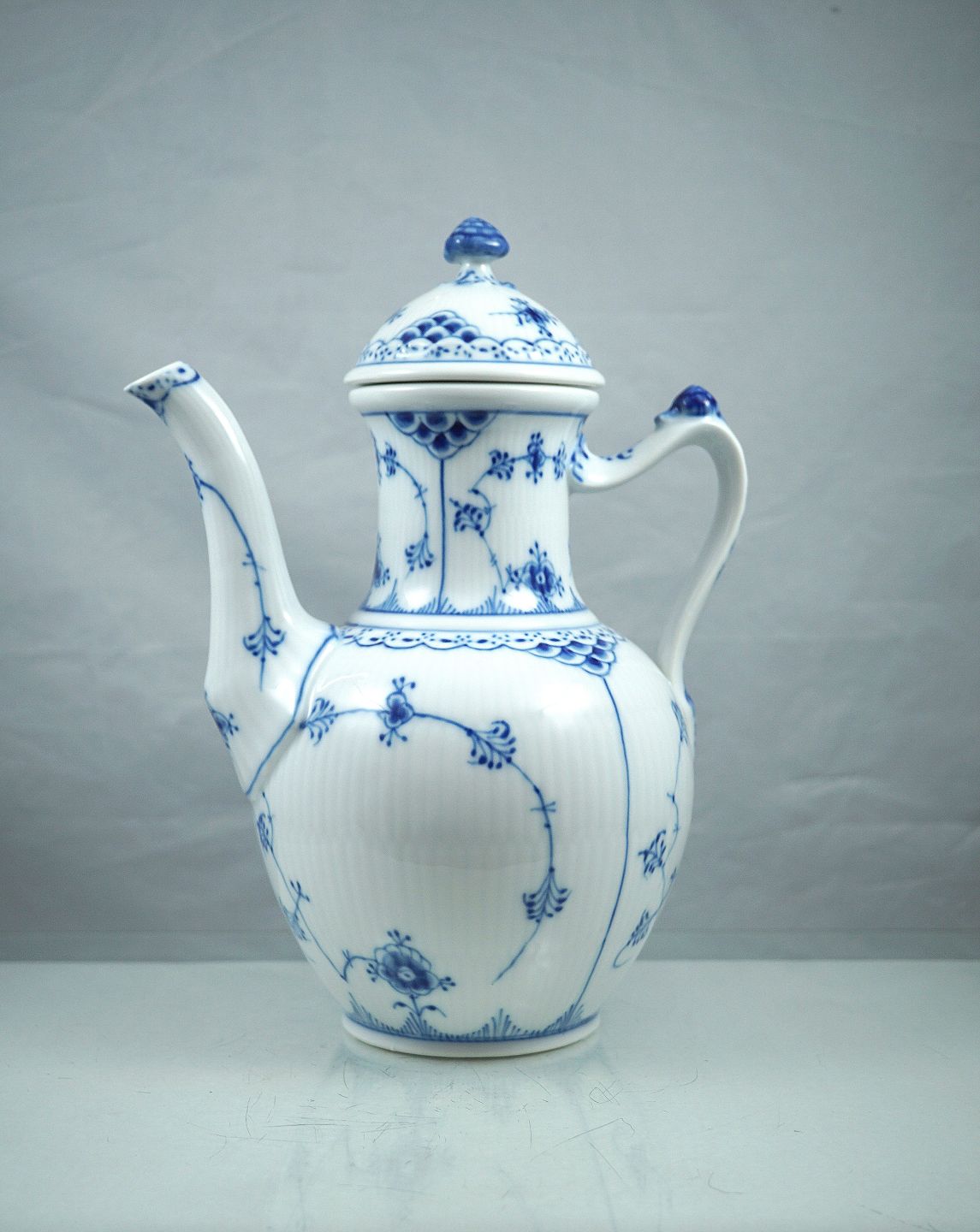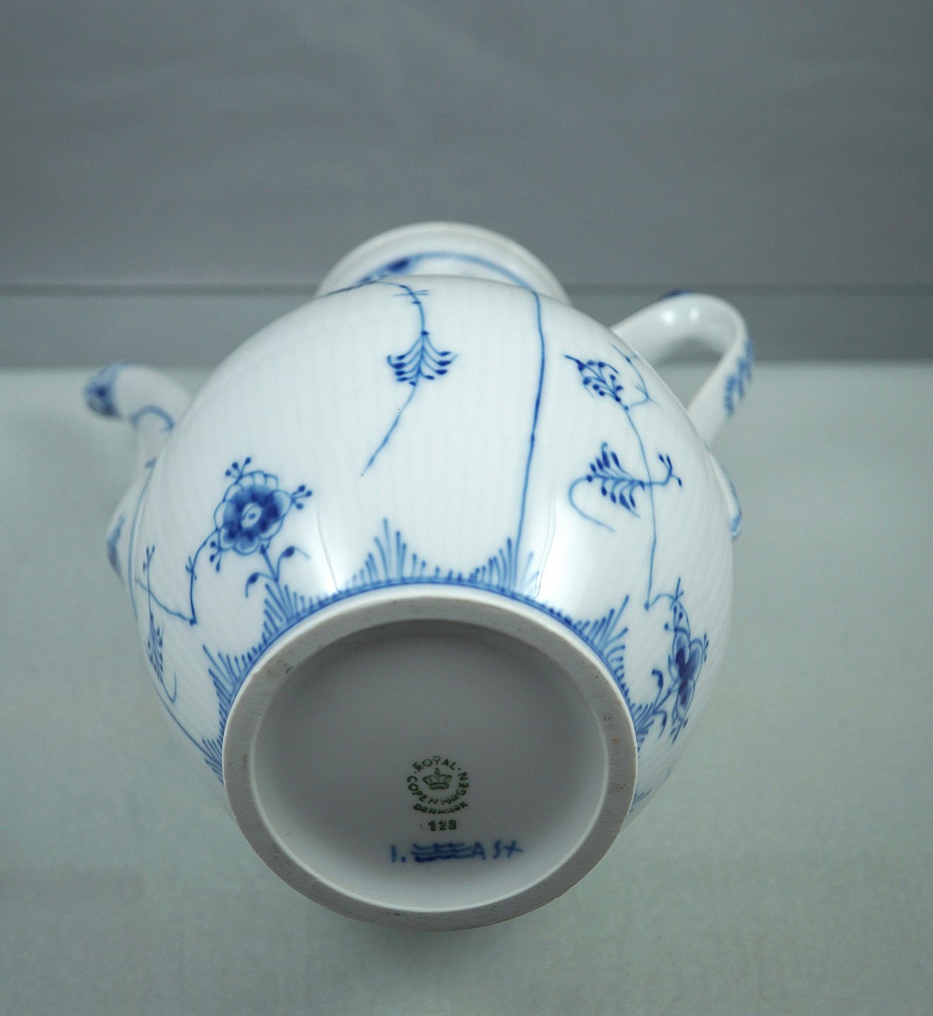 Royal Copenhagen. Musselmalet riflet kaffekande nr. 128 + låg nr.127