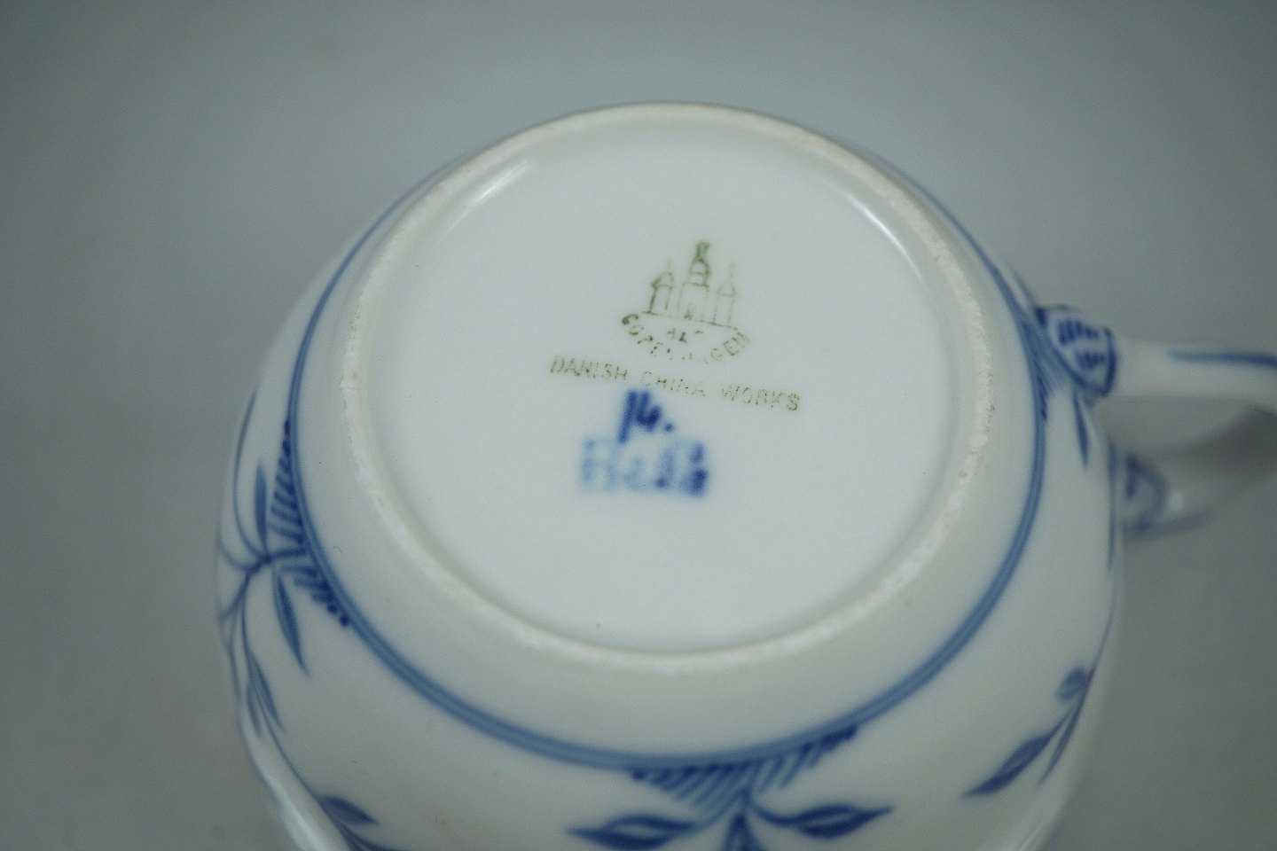 B&G, porcelæn, blå, hvid, tekop med hank