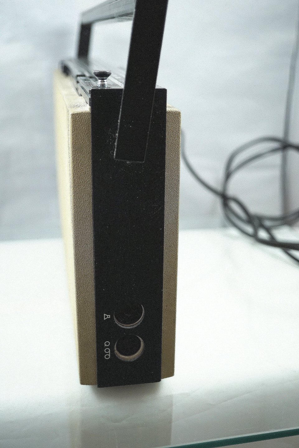 B&O, transistorradio model 707, modelnr. 9960. Radioen er intakt med ledning og antenne. Farven på radioen er grå. BeoLit 707 er formgivet 1978. Transistorradioen virker.