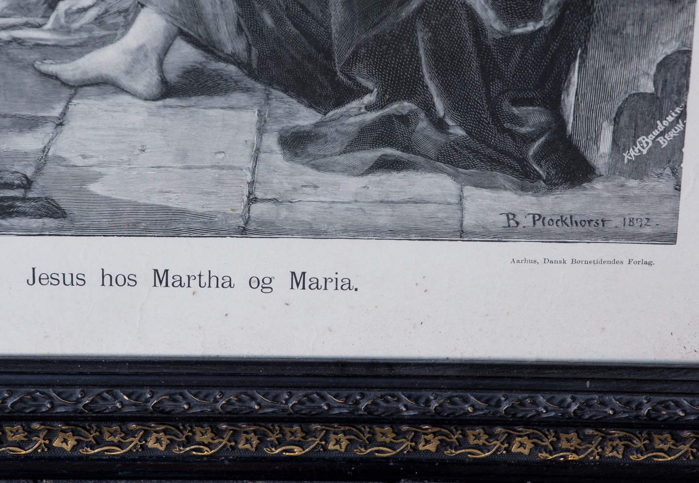 Religiøst bogtryk med motiv af Jesus, Martha og Maria