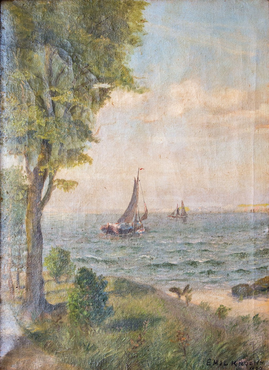 Julius Rosenkrans Madsen Træbåde ved mole Maleri