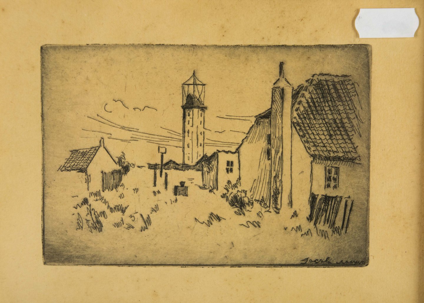 Radering med motiv af Gammel Hune ved Skagen Fyrbakke