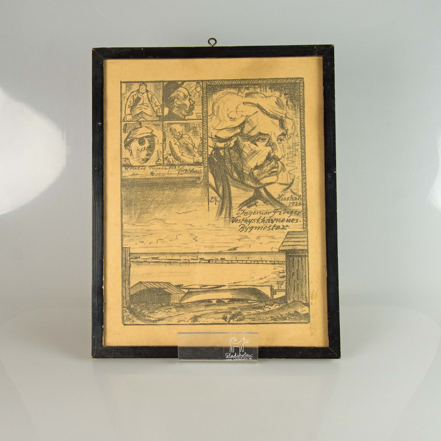 Tegnet portræt af Ingeniør Fibigier, bygmester i Hirtshals 1926