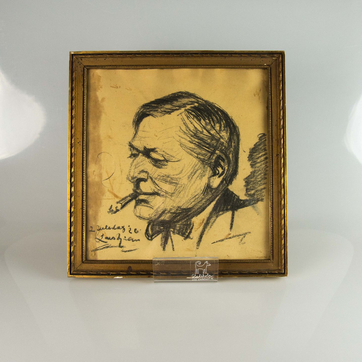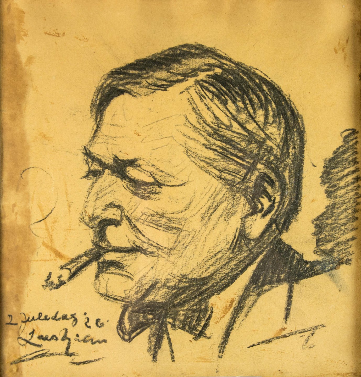 Tegnet portræt fra 2. juledag år 1926 af mand med cigar