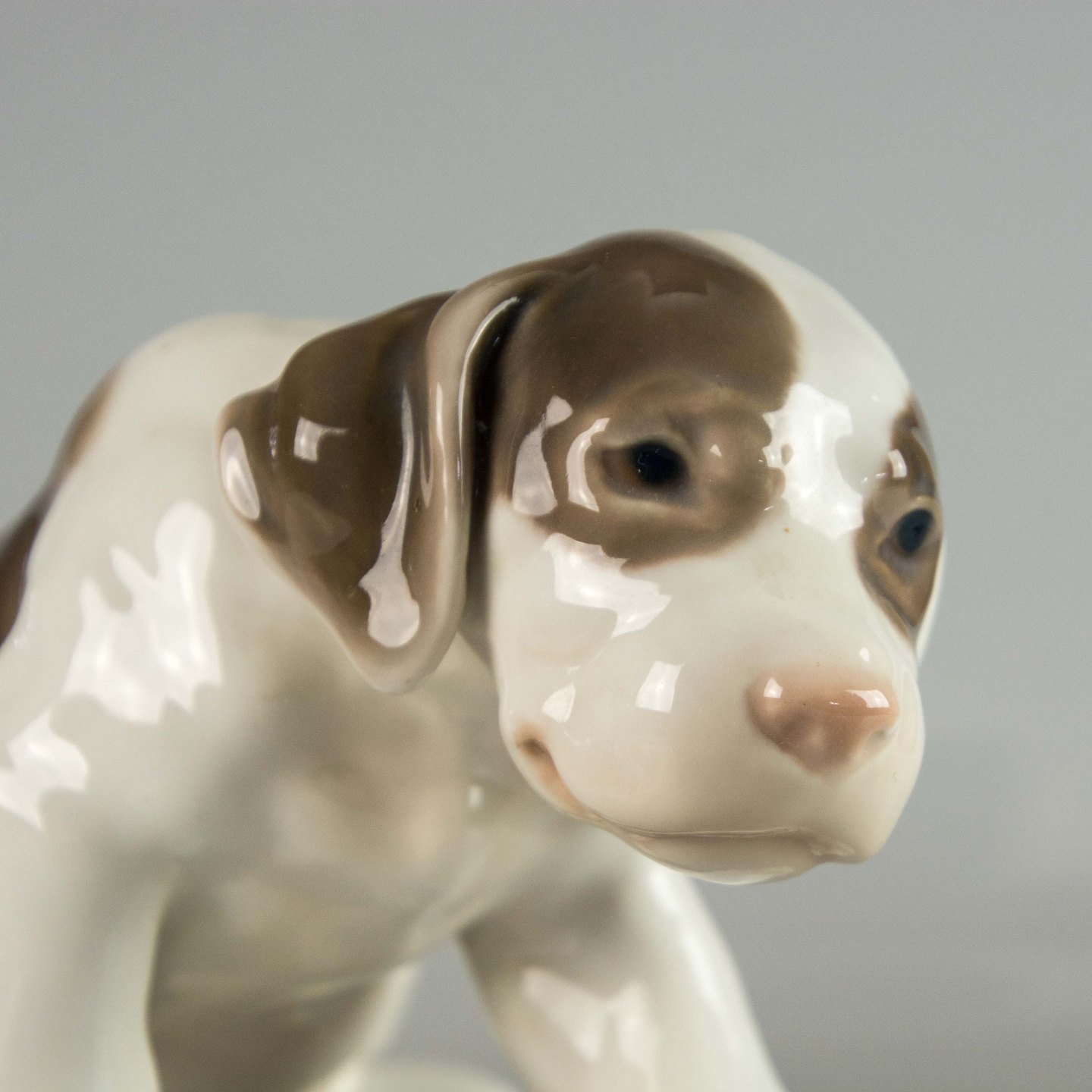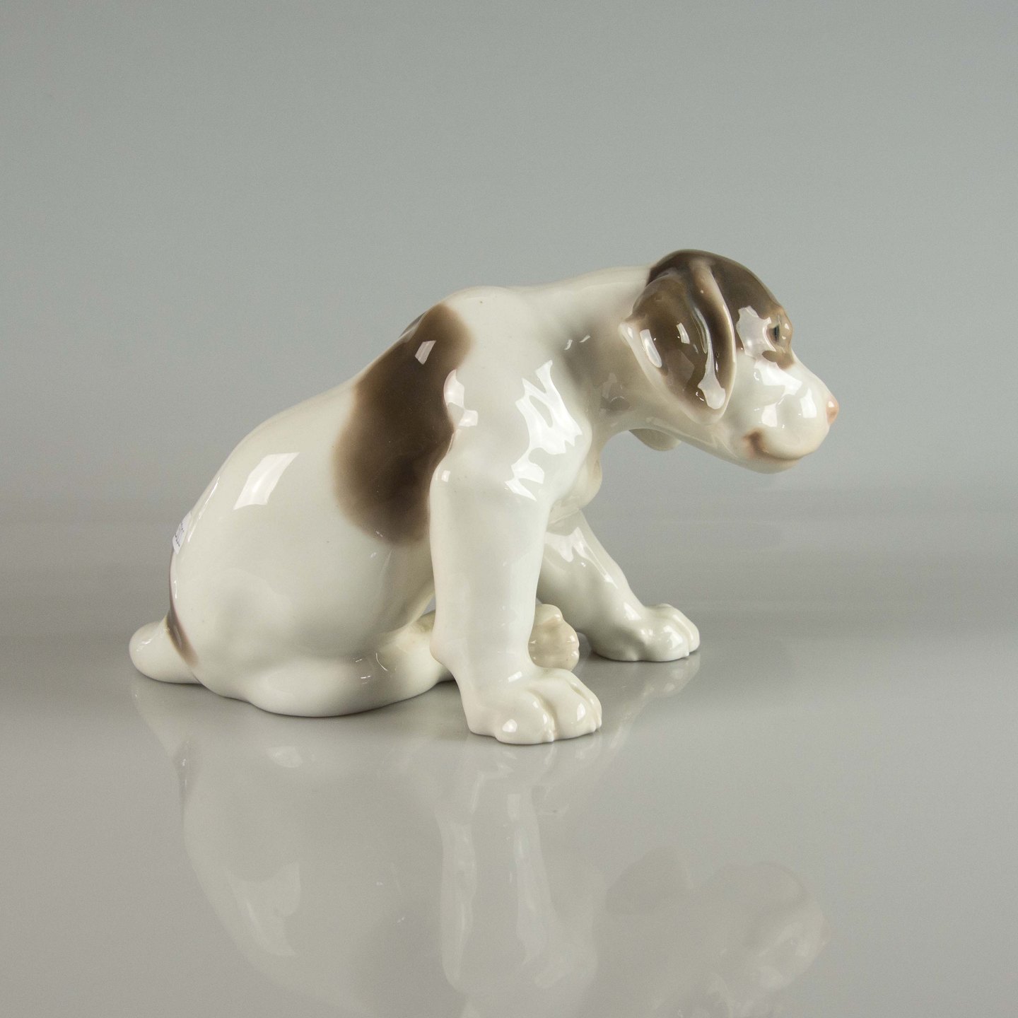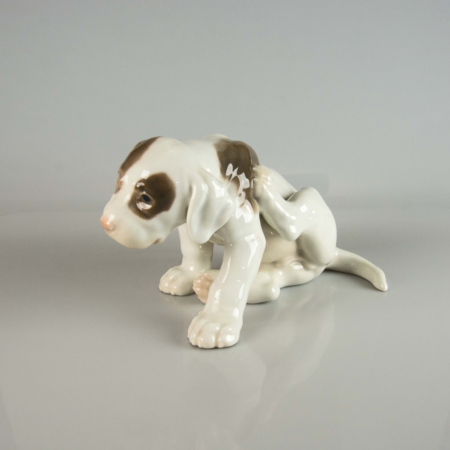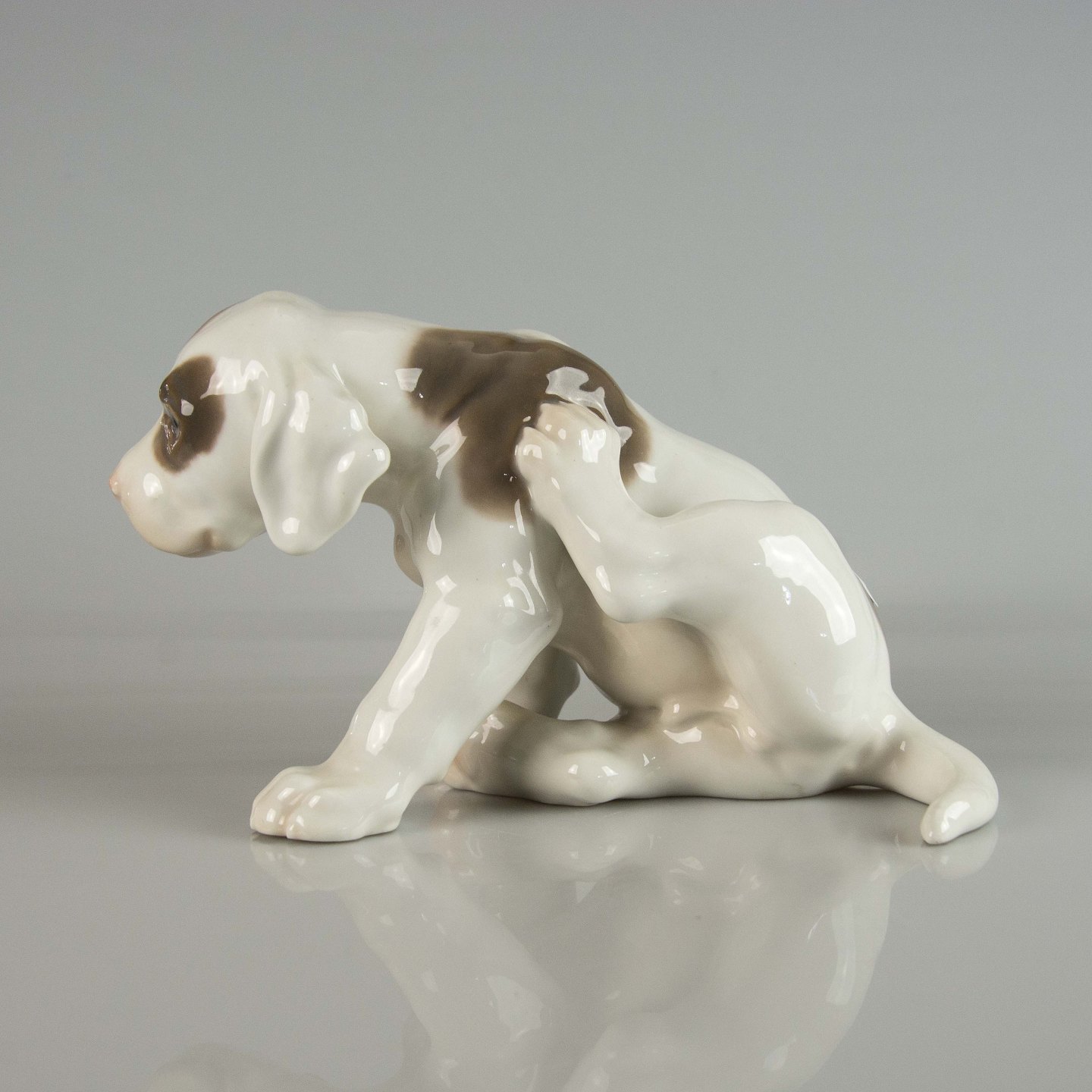 Figur i porcelæn med motiv af siddende pointerhvalp, der klør sig nr. 2060