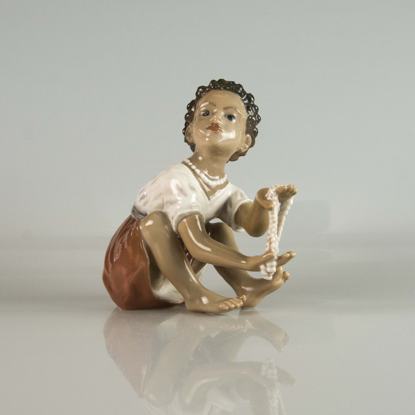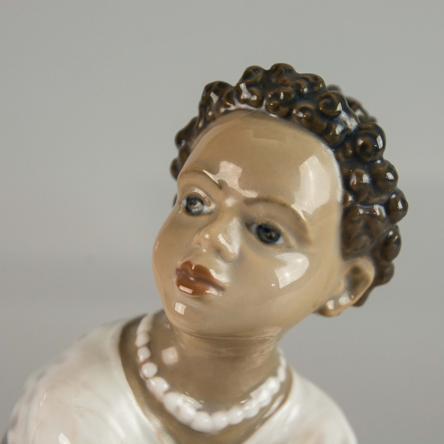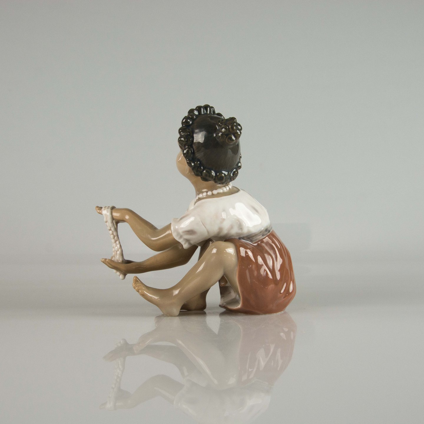 Figur i porcelæn med motiv af siddende pige med perler nr. 1353
