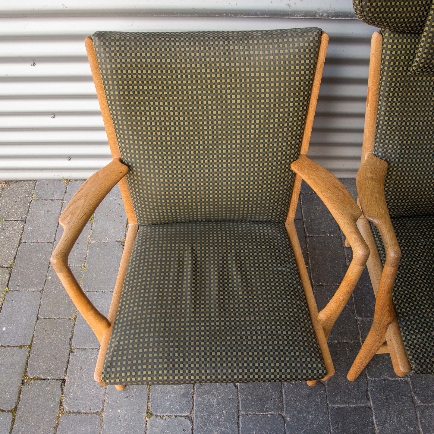 Et sæt lænestole i egetræ med stofbetrukne sæder model AP15 og AP16