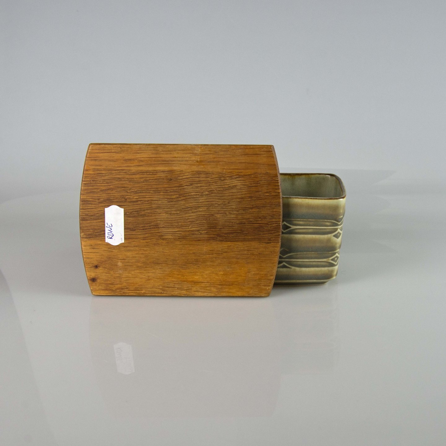Smørboks i stentøj med trælåg fra stellet Rune nr. 582