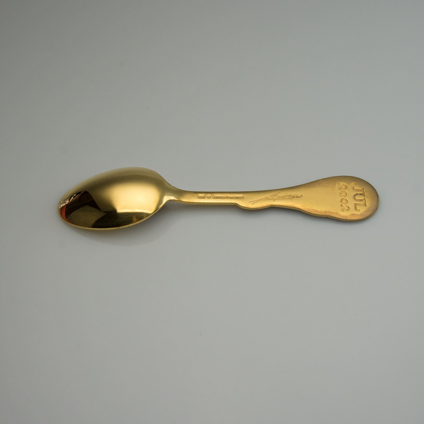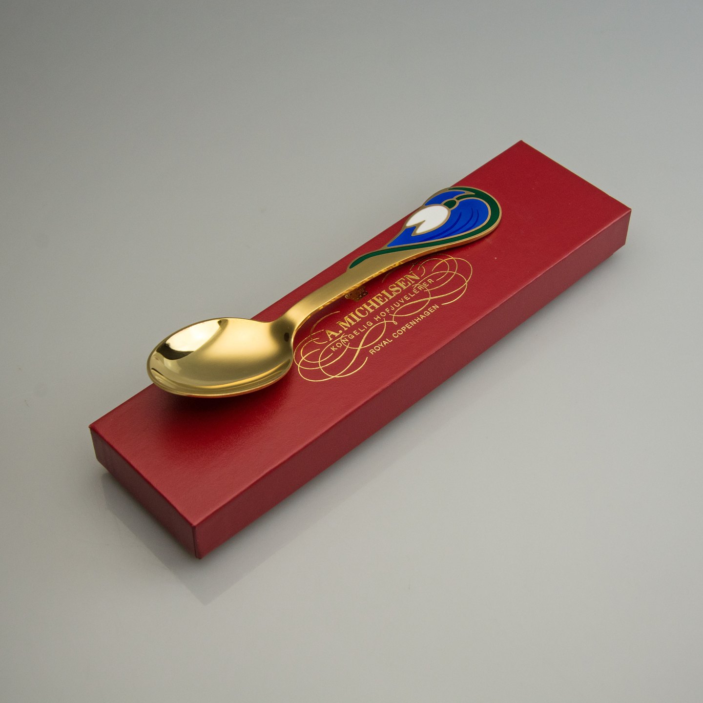 Juleske fra år 2002 med motiv af vintergæk i forgyldt sølv
