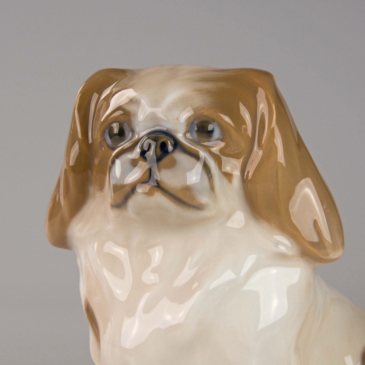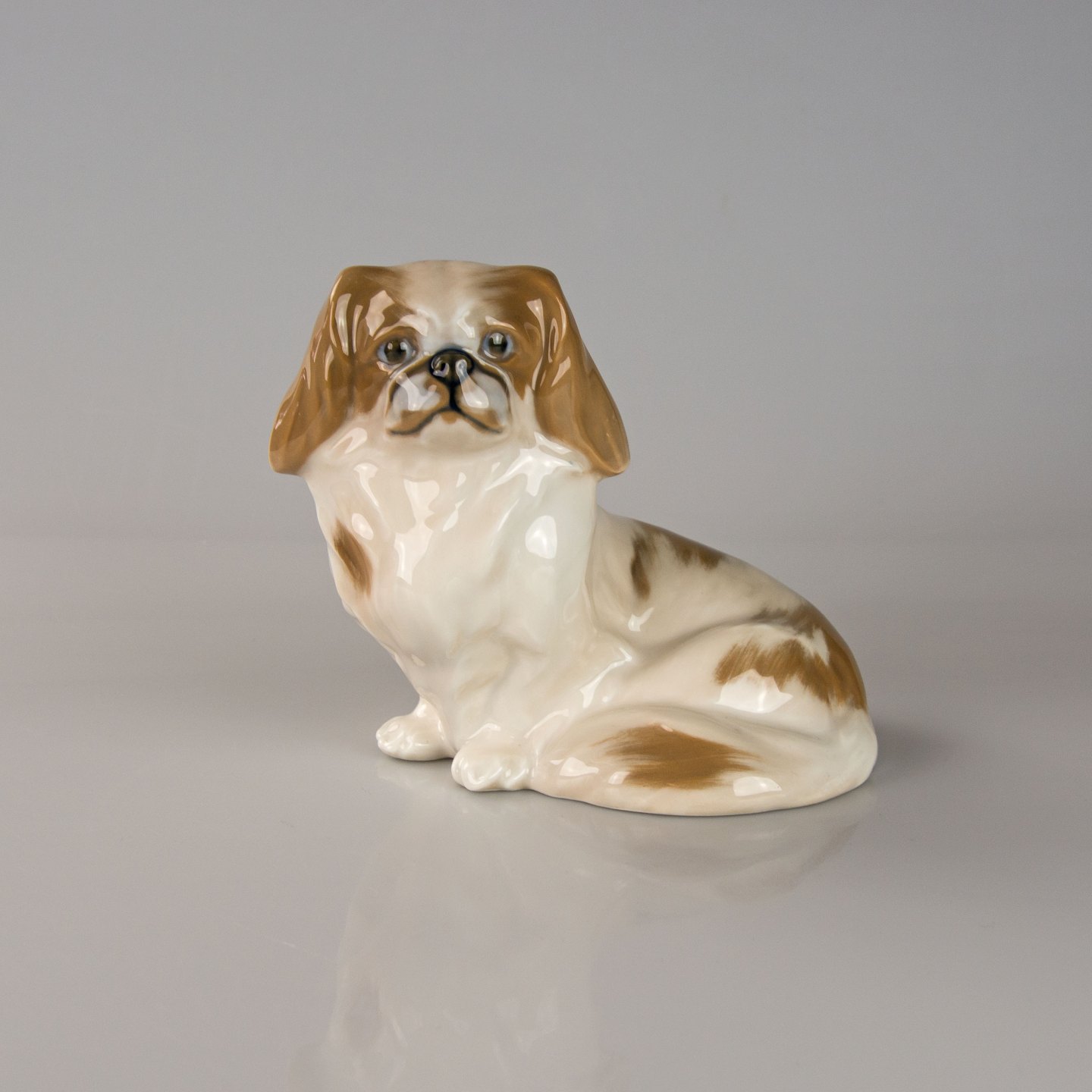 Figur i porcelæn med motiv af siddende Pekingeser nr. 1772