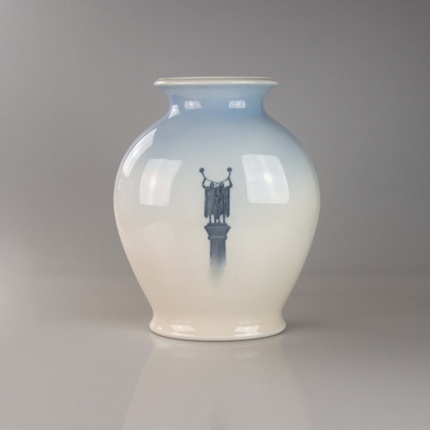 På bagsiden er vasen dekoreret med motiv af to lurblæsere.