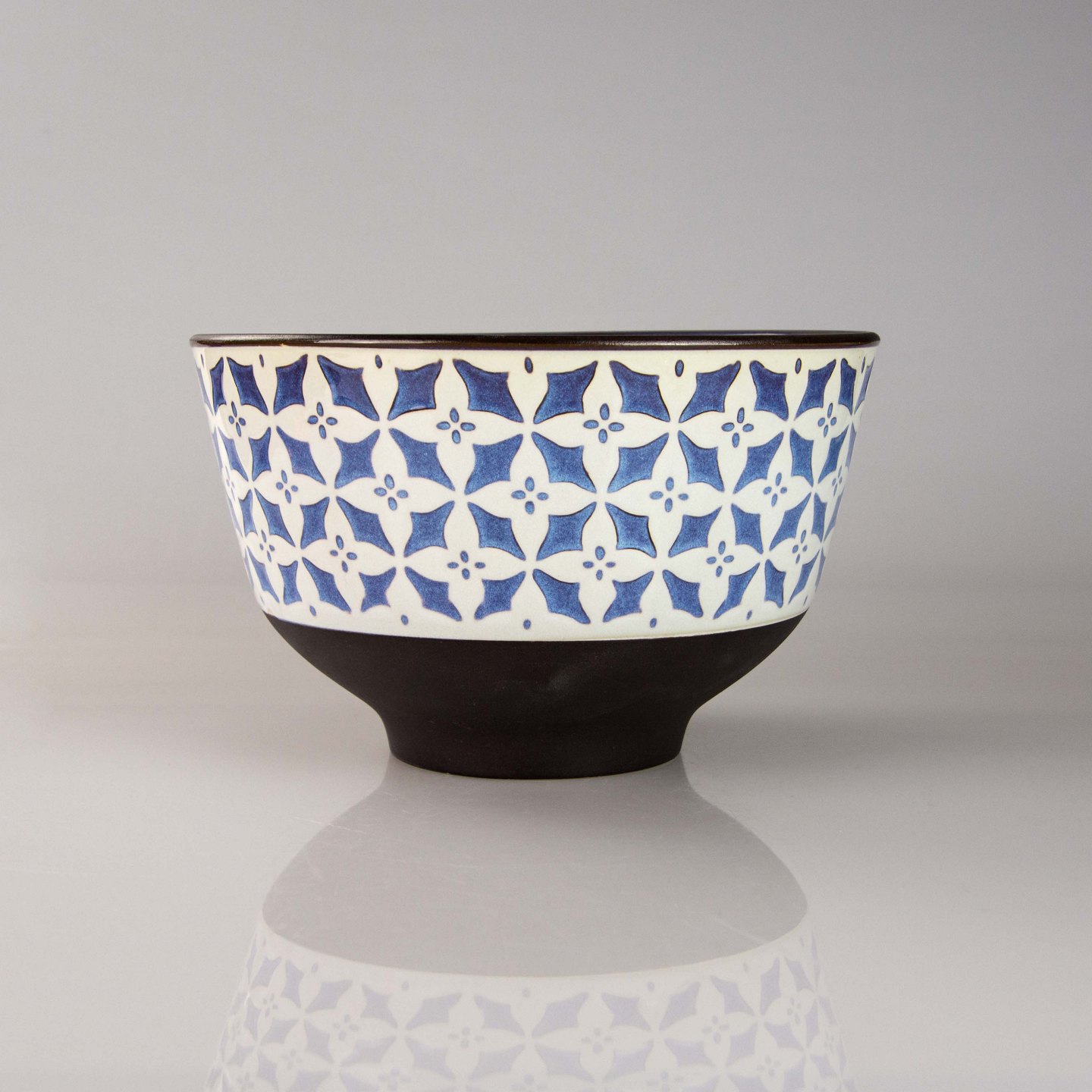 Thule skål i fajance med hvid og blå mønstret motiv nr. 3126