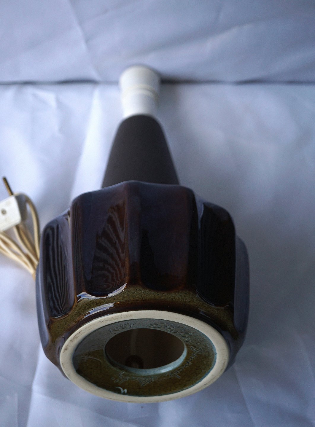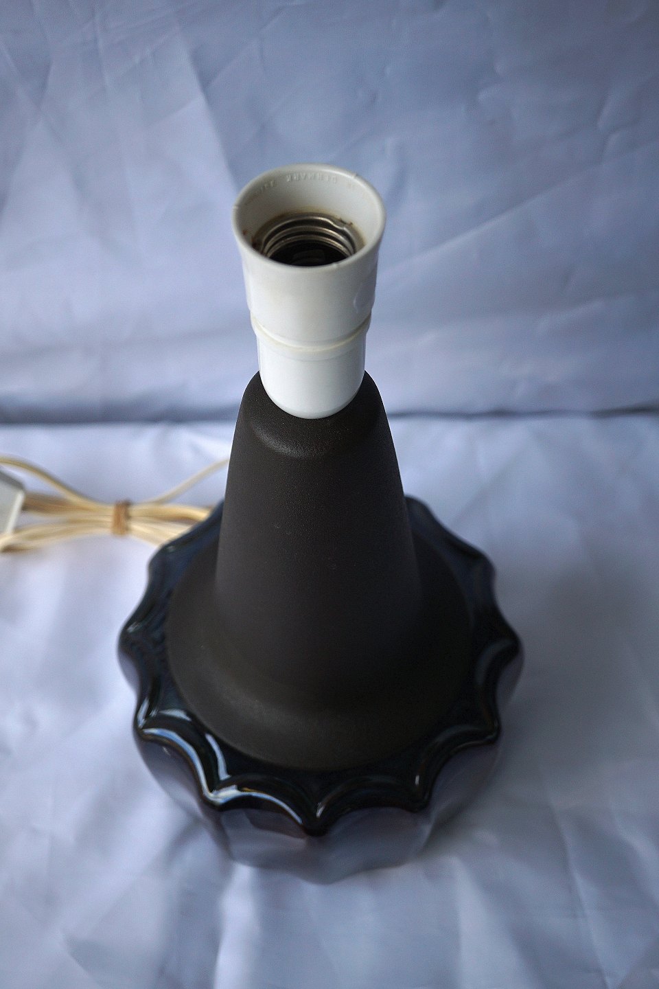 Bordlampe Søholm Keramik nr. 1051. Blå/lilla, changerende stentøjslampe. Design Ejnar Johansen