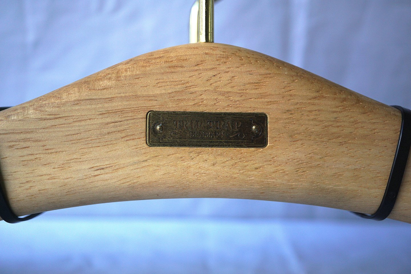 TripTrap. 5 stk. bøjler i ubehandlet eg med krog i rustfrit stål.