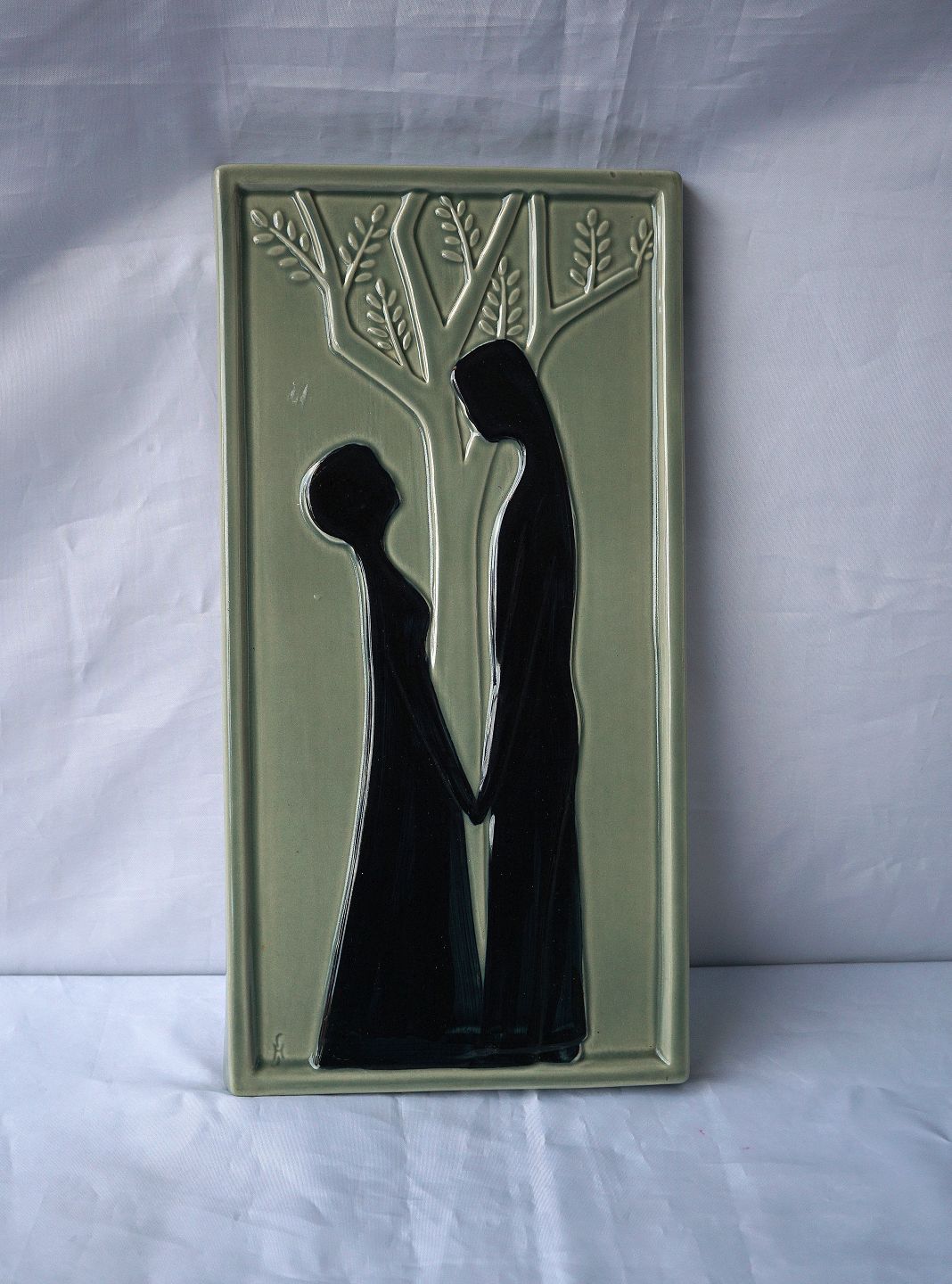 Søholm relief, nr. 464. Initialer LJ. Relieffet er gråt med silhuetter af en kvinde og en mand