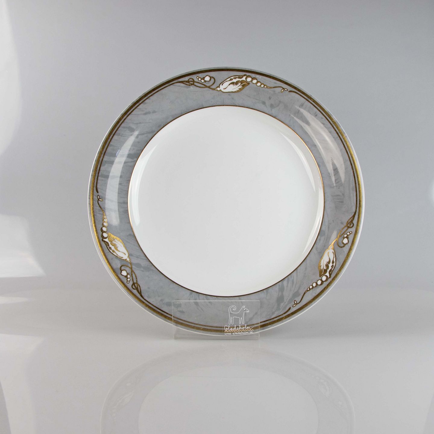 Flad dæktallerken i porcelæn i stellet Grå magnolia nr. 827