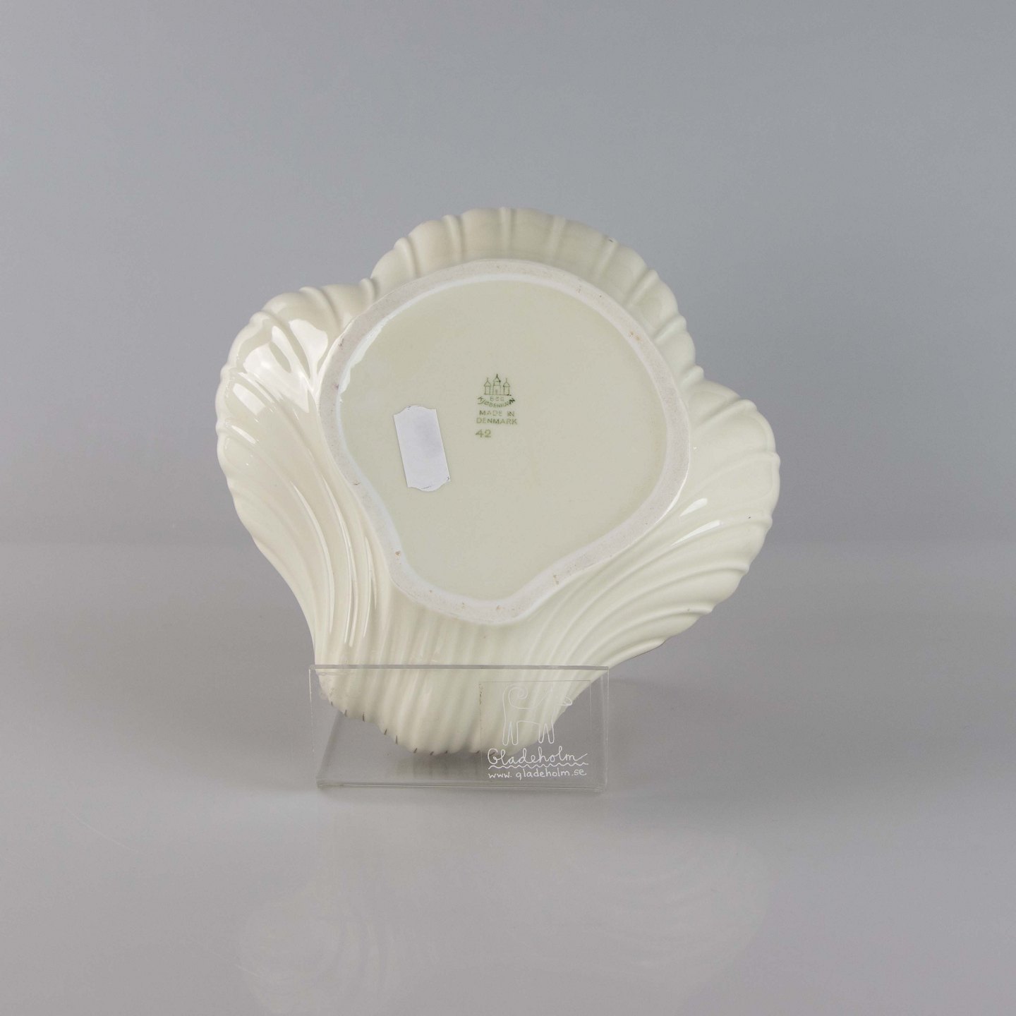 Muslingformet fad i porcelæn fra stellet Valhalla nr. 42