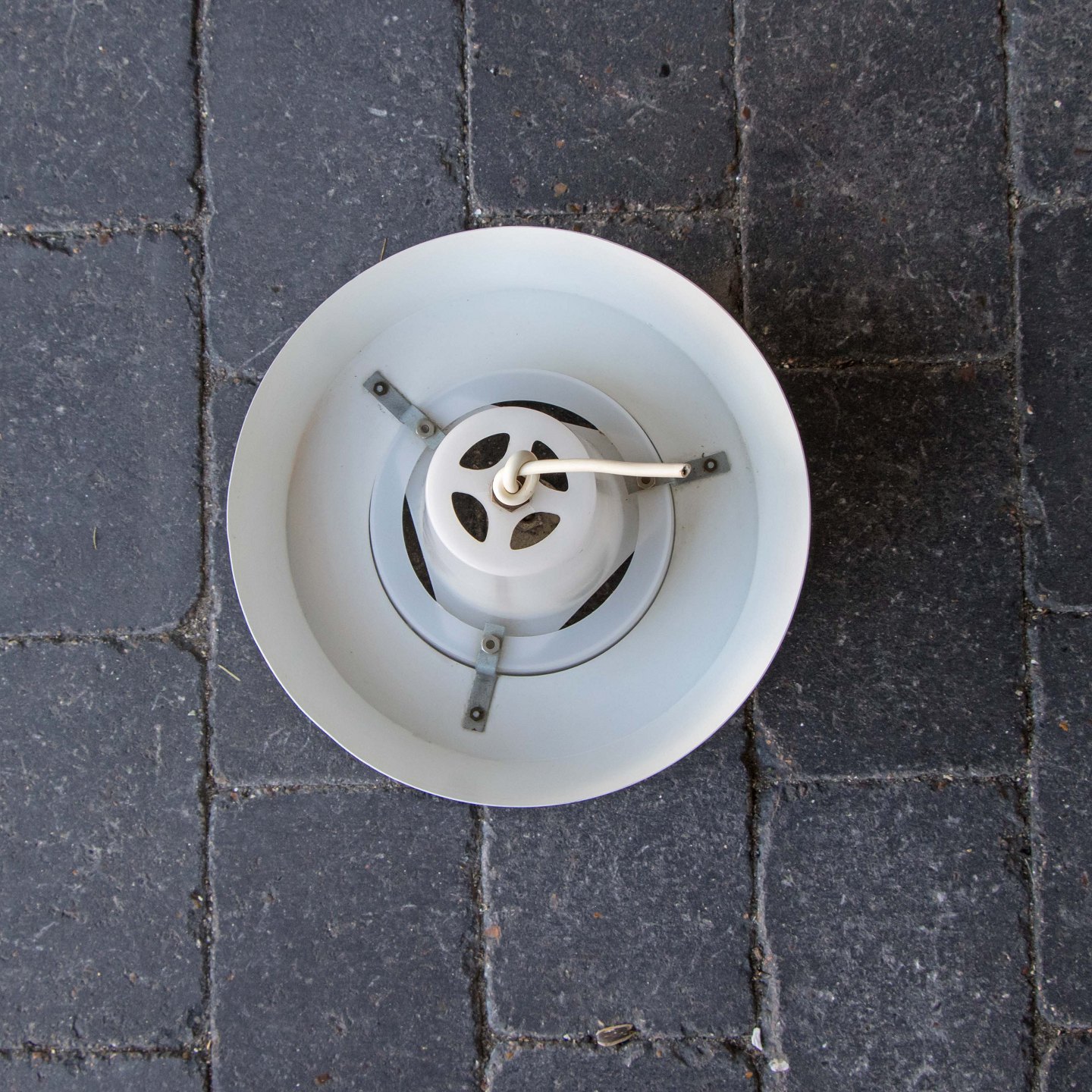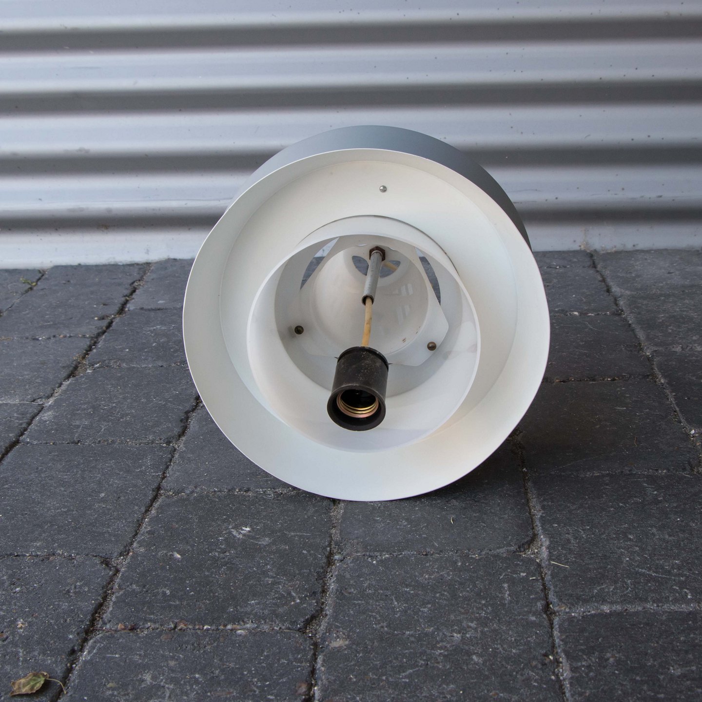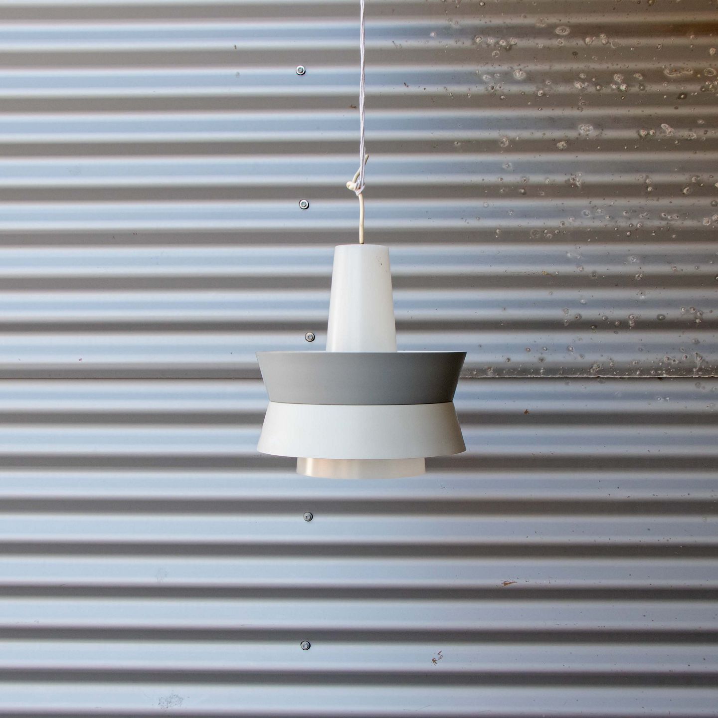 Pendel i aluminium lakeret i to grå nuancer samt hvid plast