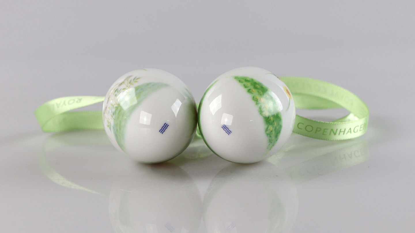 Påskeæg i porcelæn med motiv af et lam og et par hareunger