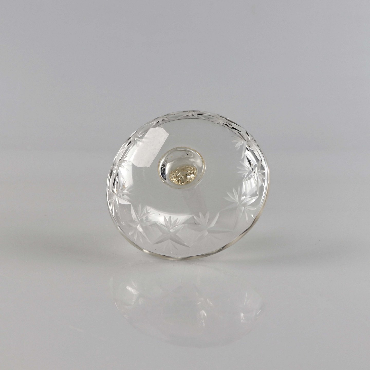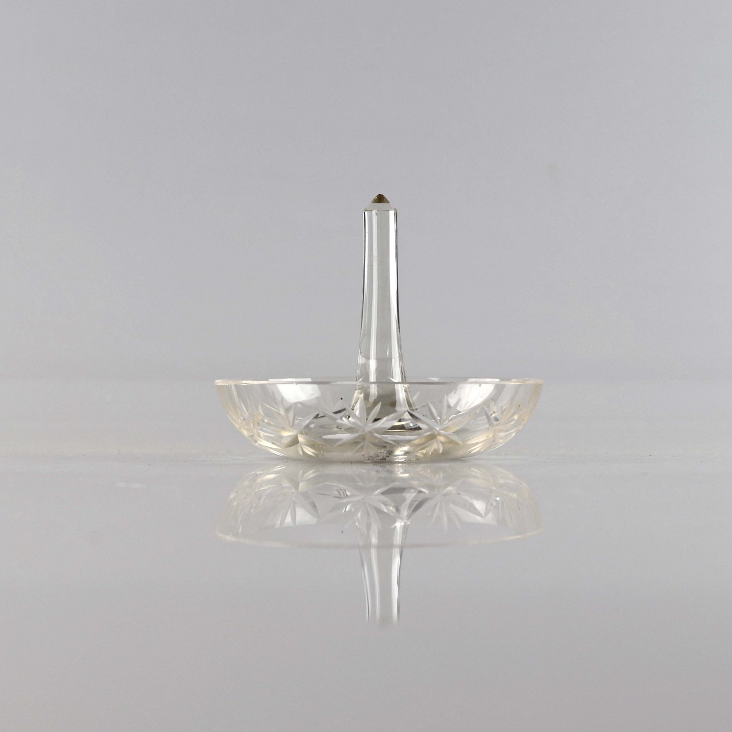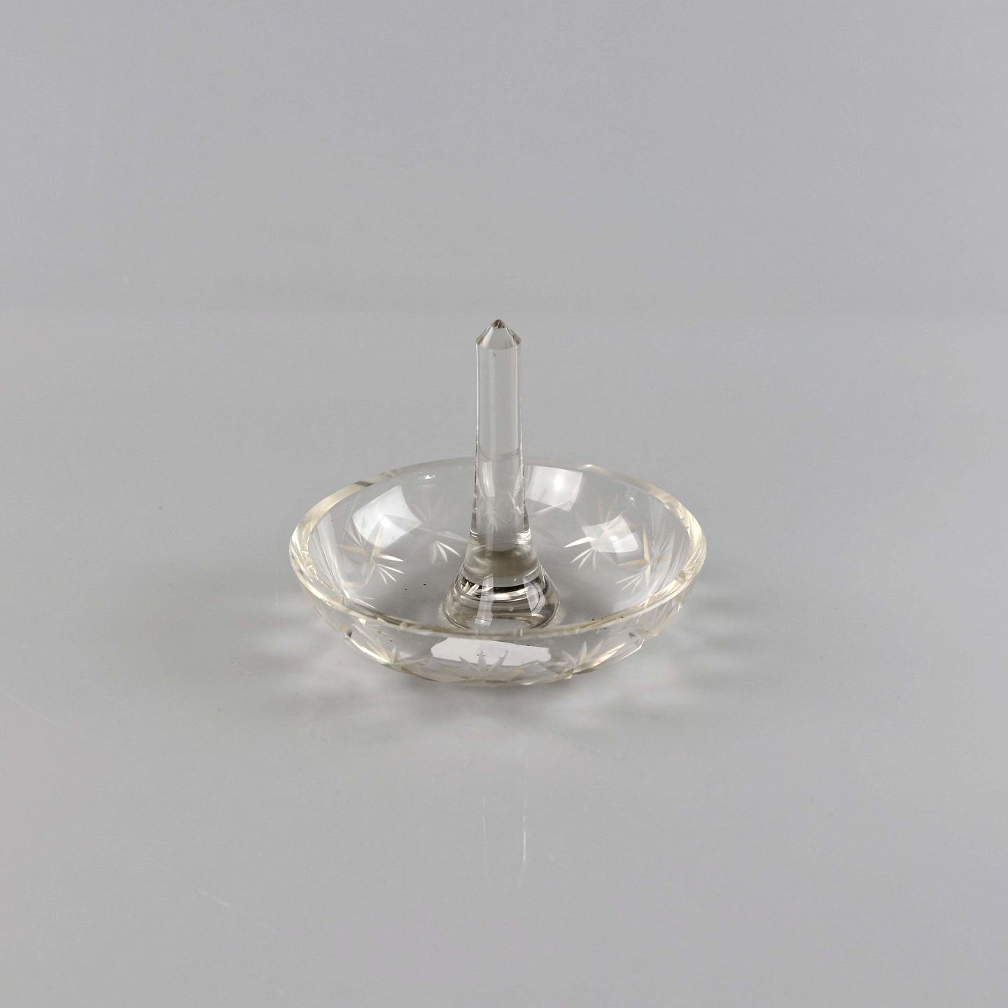 Ringholder i presset klart glas med motiv af stjerner, formentlig 1920erne