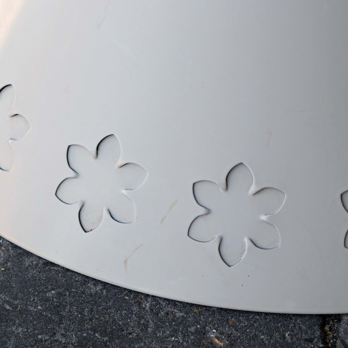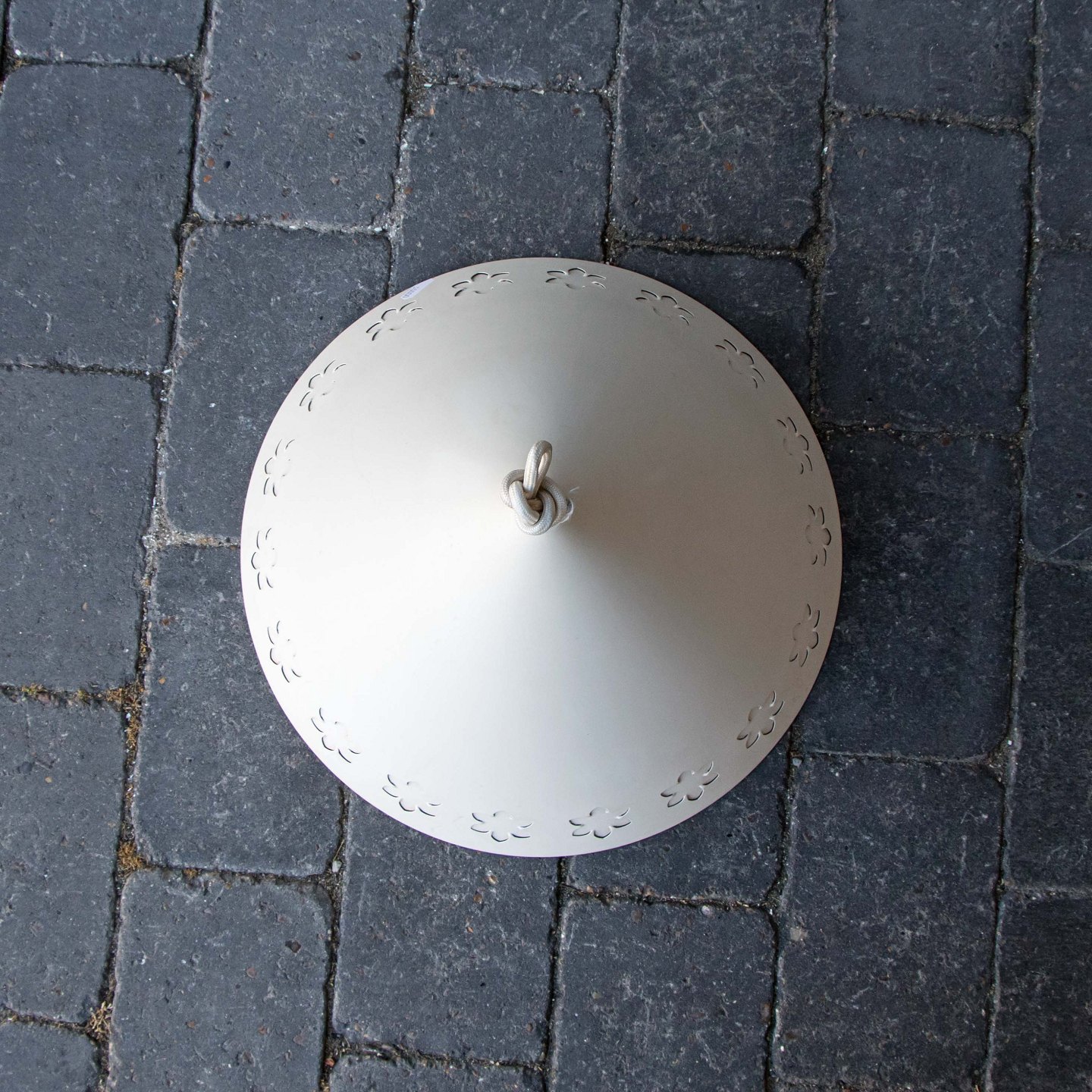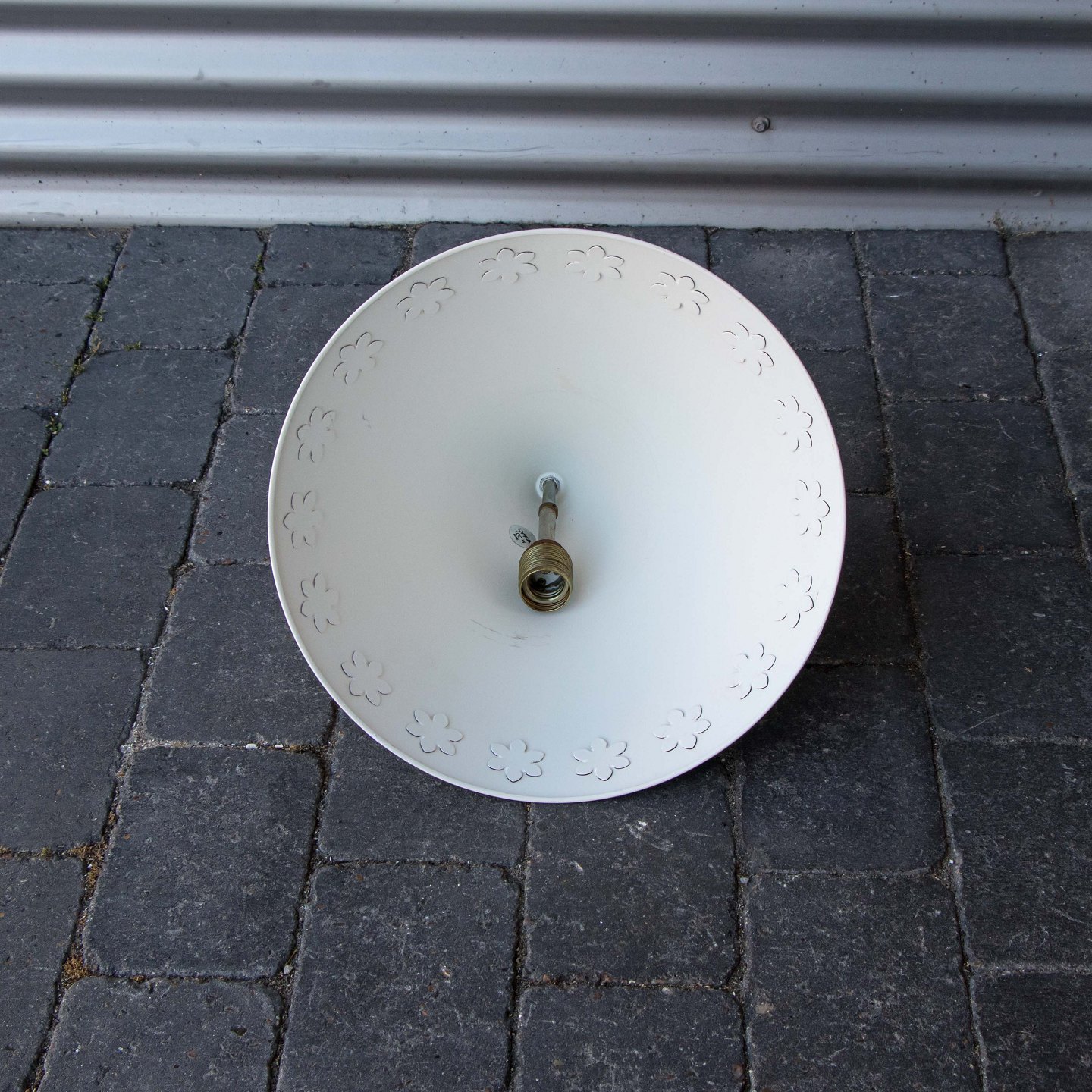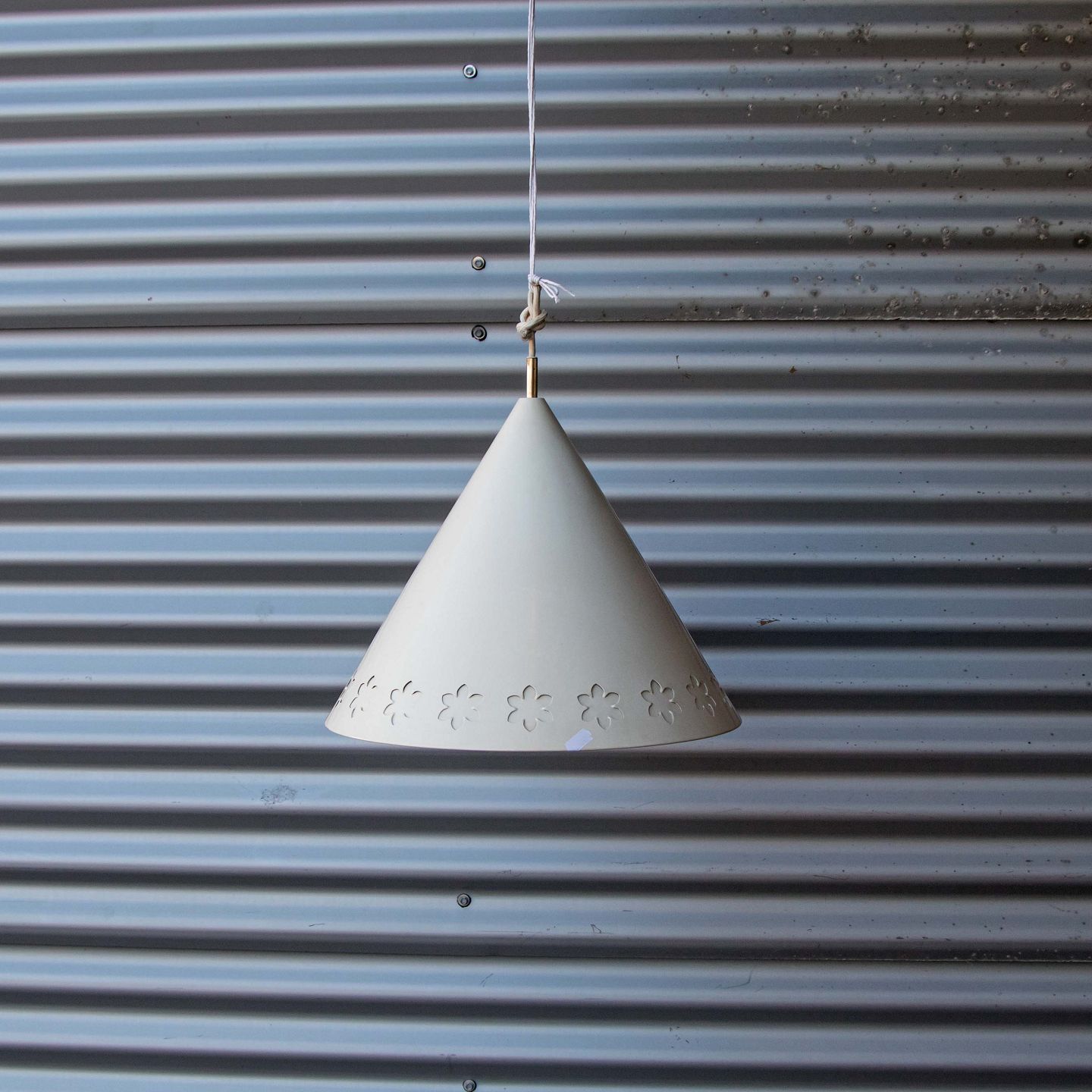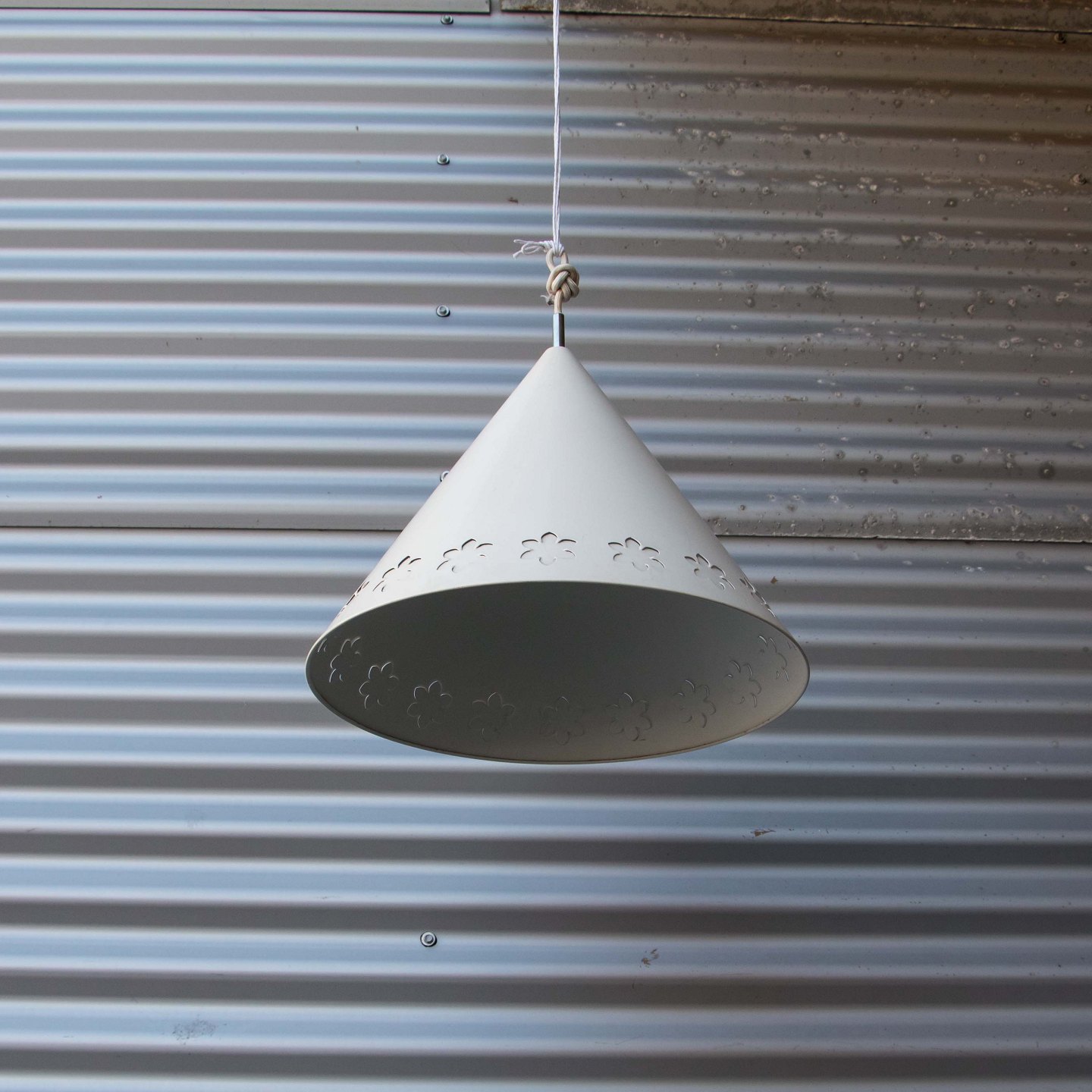 Kegleformet pendel i hvidlakeret aluminium med udskæring af blomstermotiver