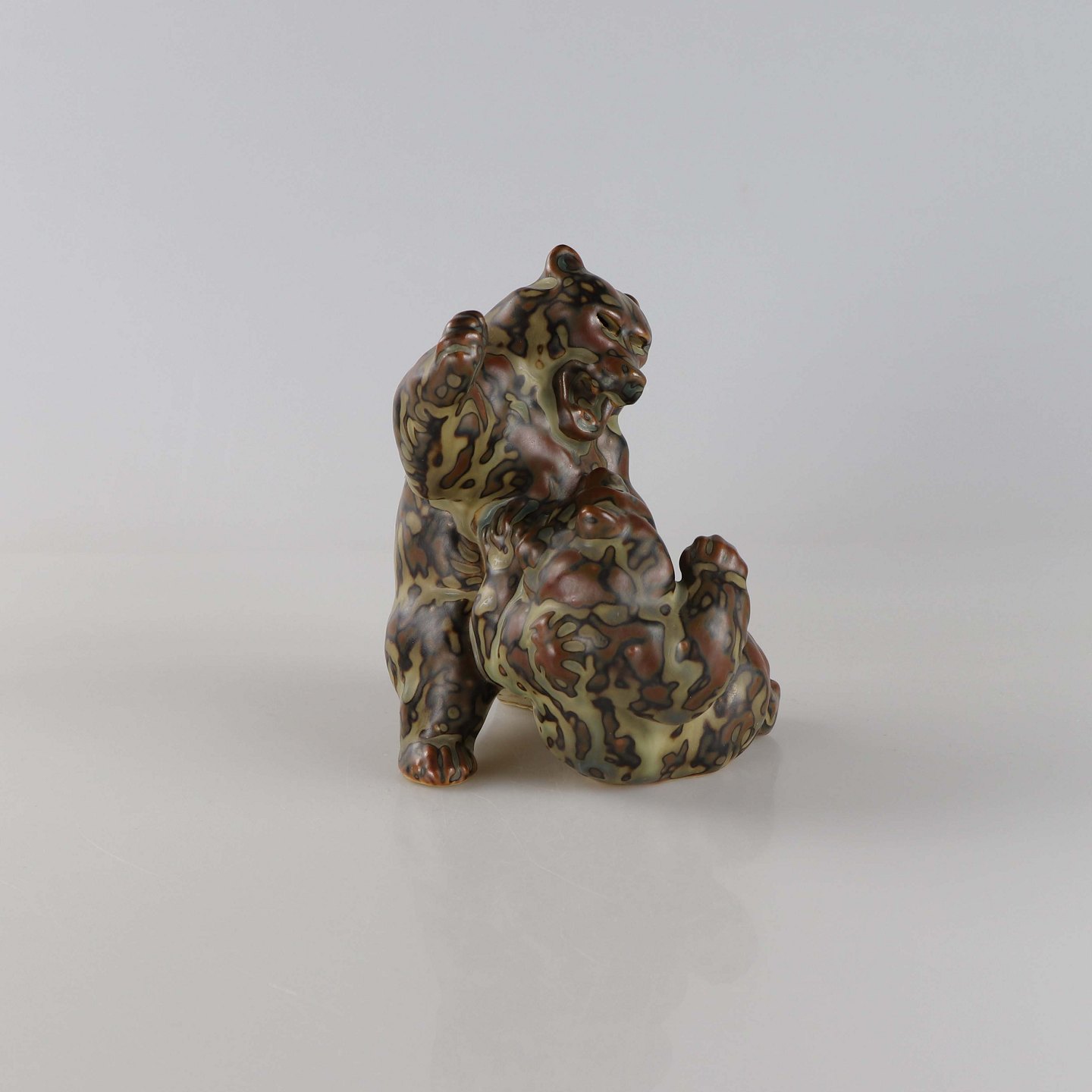 Figur i stentøj med motiv af bjørne, som leger nr. 20240