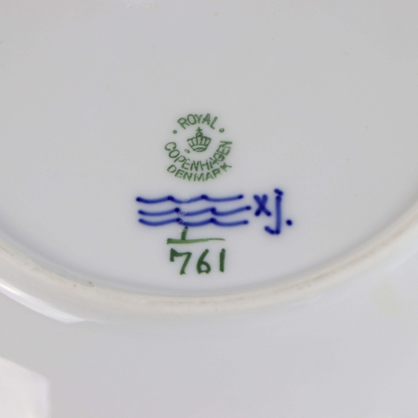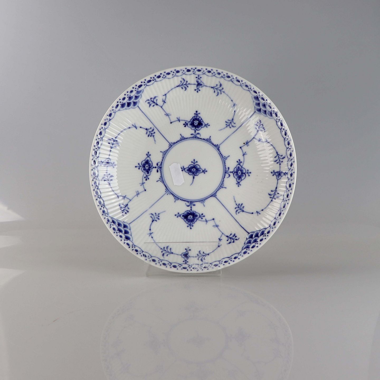 Rundt fad i porcelæn i serien musselmalet halvblonde nr. 1/761