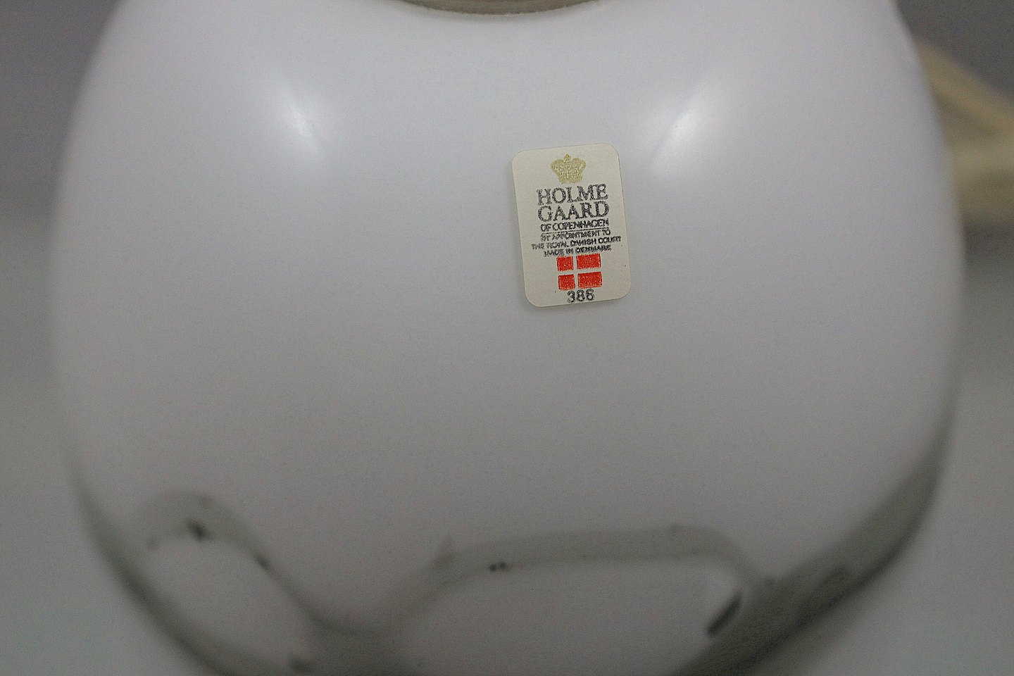 Holmegaard Glasværk. Bordlampe Sukura, oval fod. Lampen er af hvidt opalglas med grå bemaling