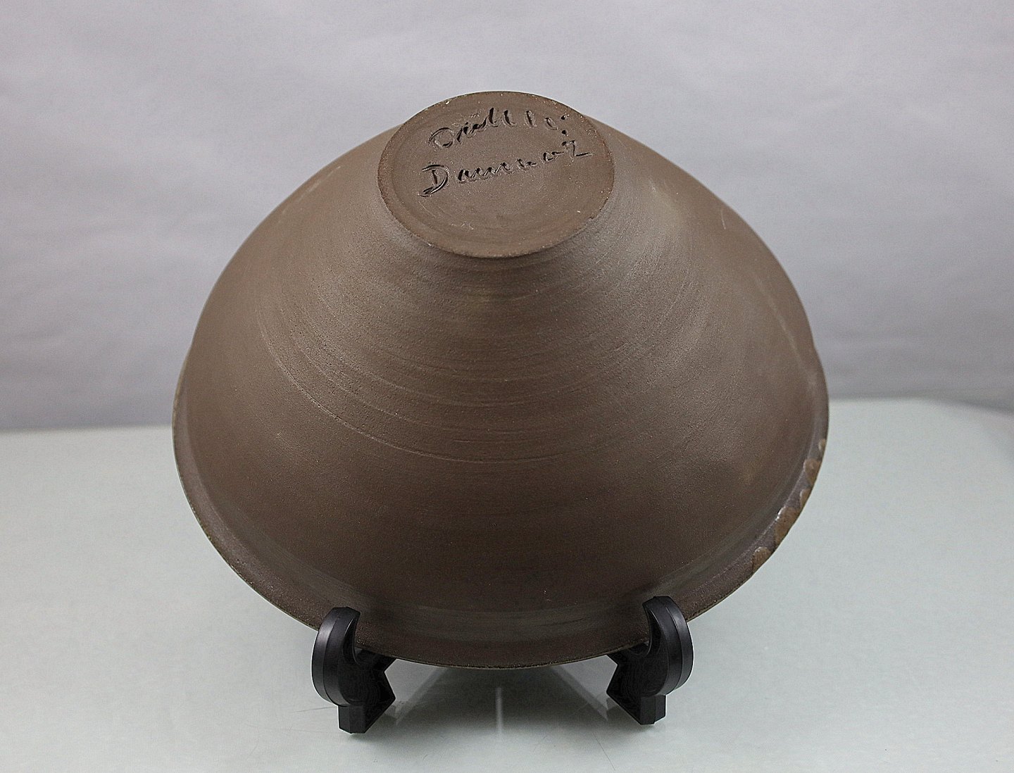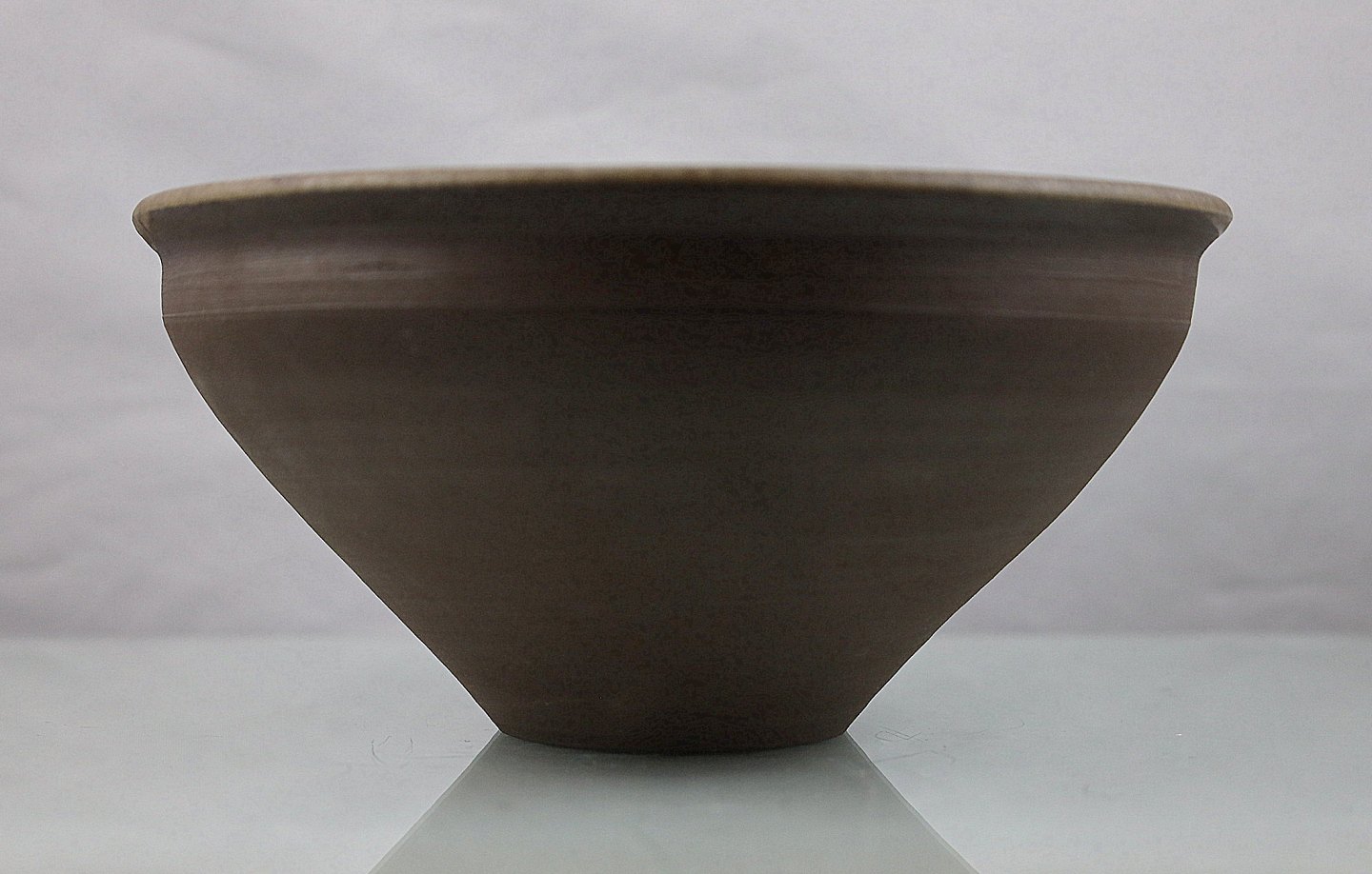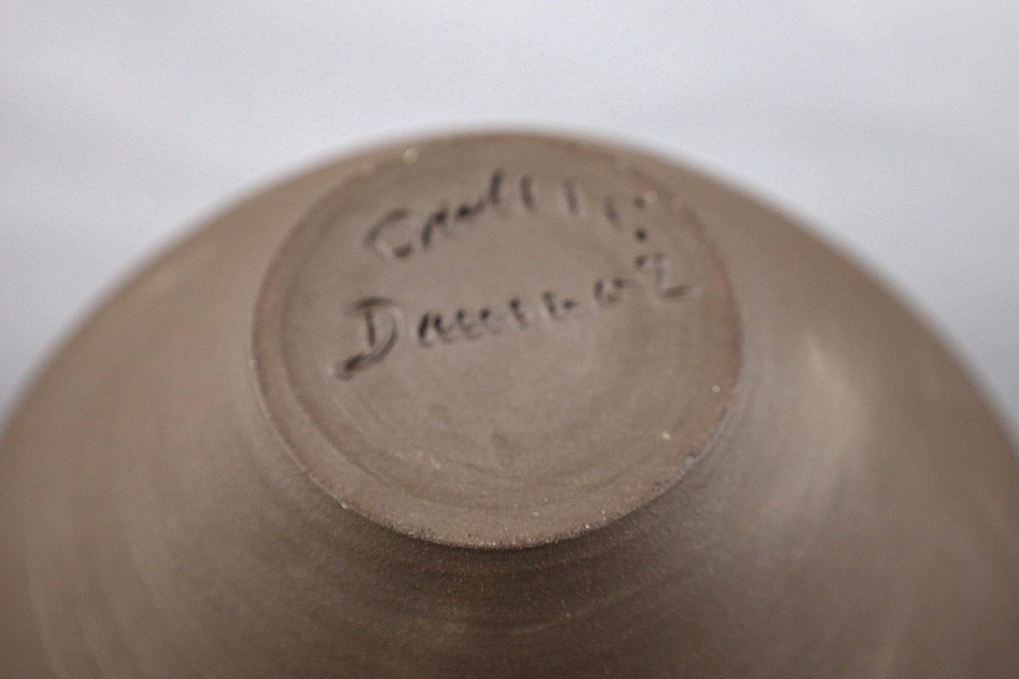 Høj keramik skål med blå og brunt glasur, skålen er kun glaseret indvendig