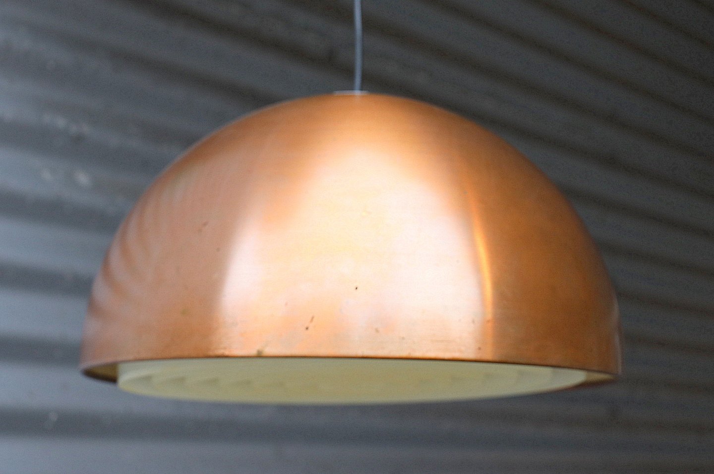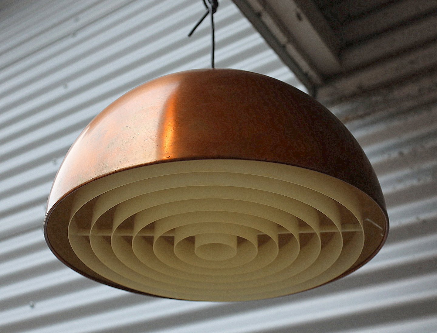 Lampen er udført i kobber. Der er en rist i plast.