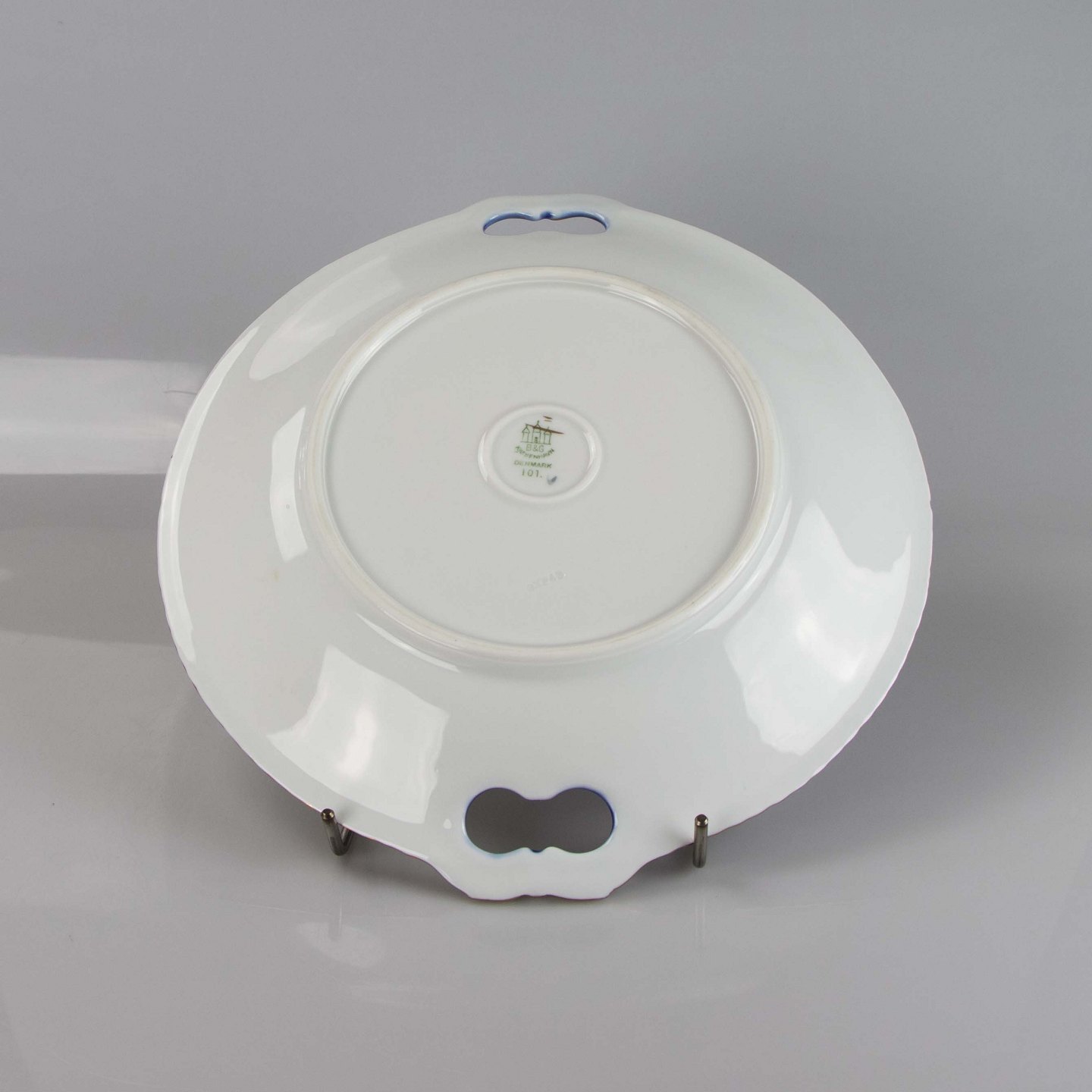 Mågestel med guldkant rundt kagefad med hank nr. 101