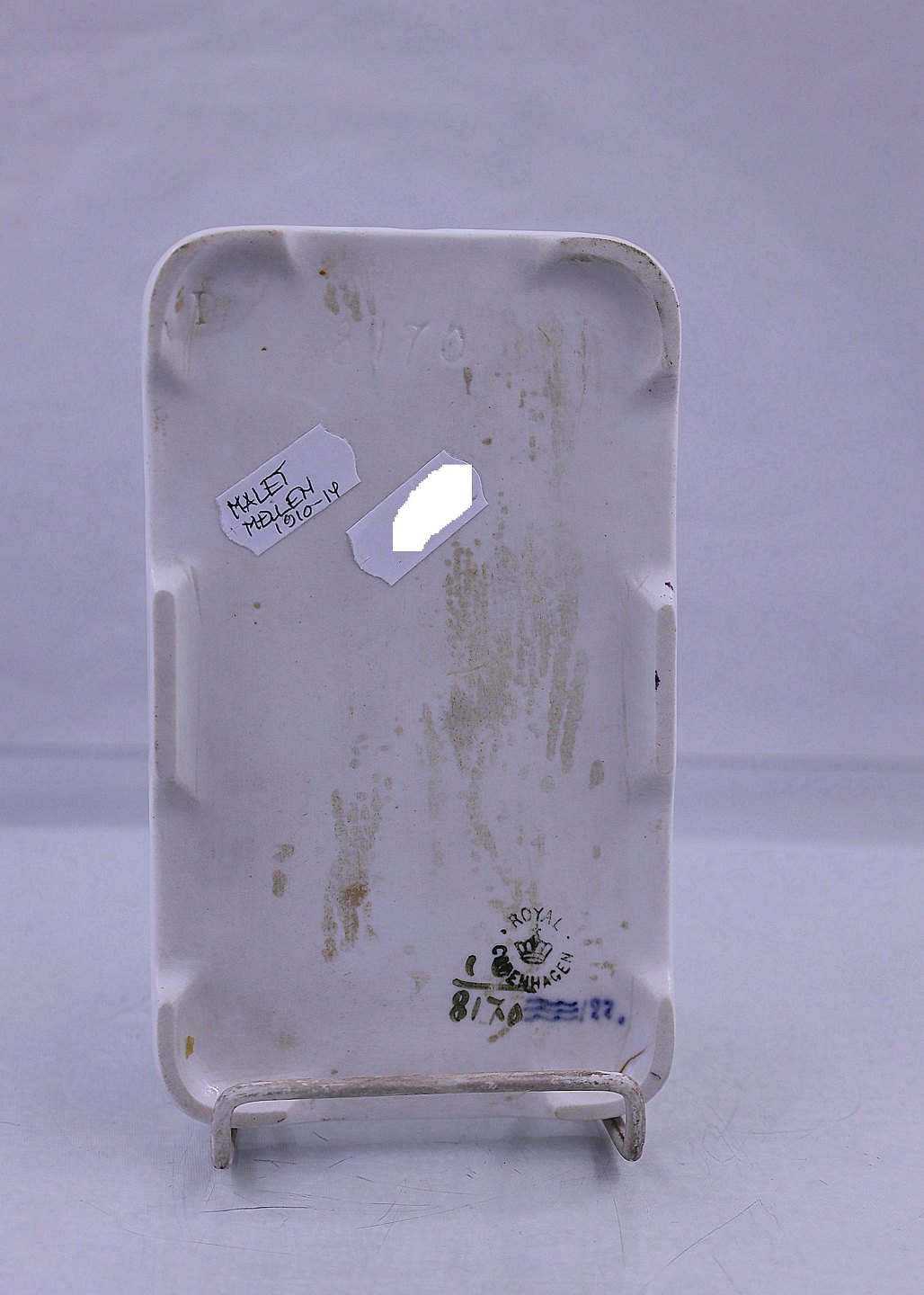 Royal Copenhagen. Smørebræt/bordskåner, nr. 10/8170, blå blomst med flettet kant. Smørebræt/bordskåner er malet mellem 1890-1920