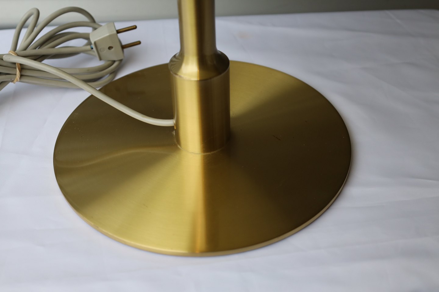 Messing bordlampe med plast skærm.