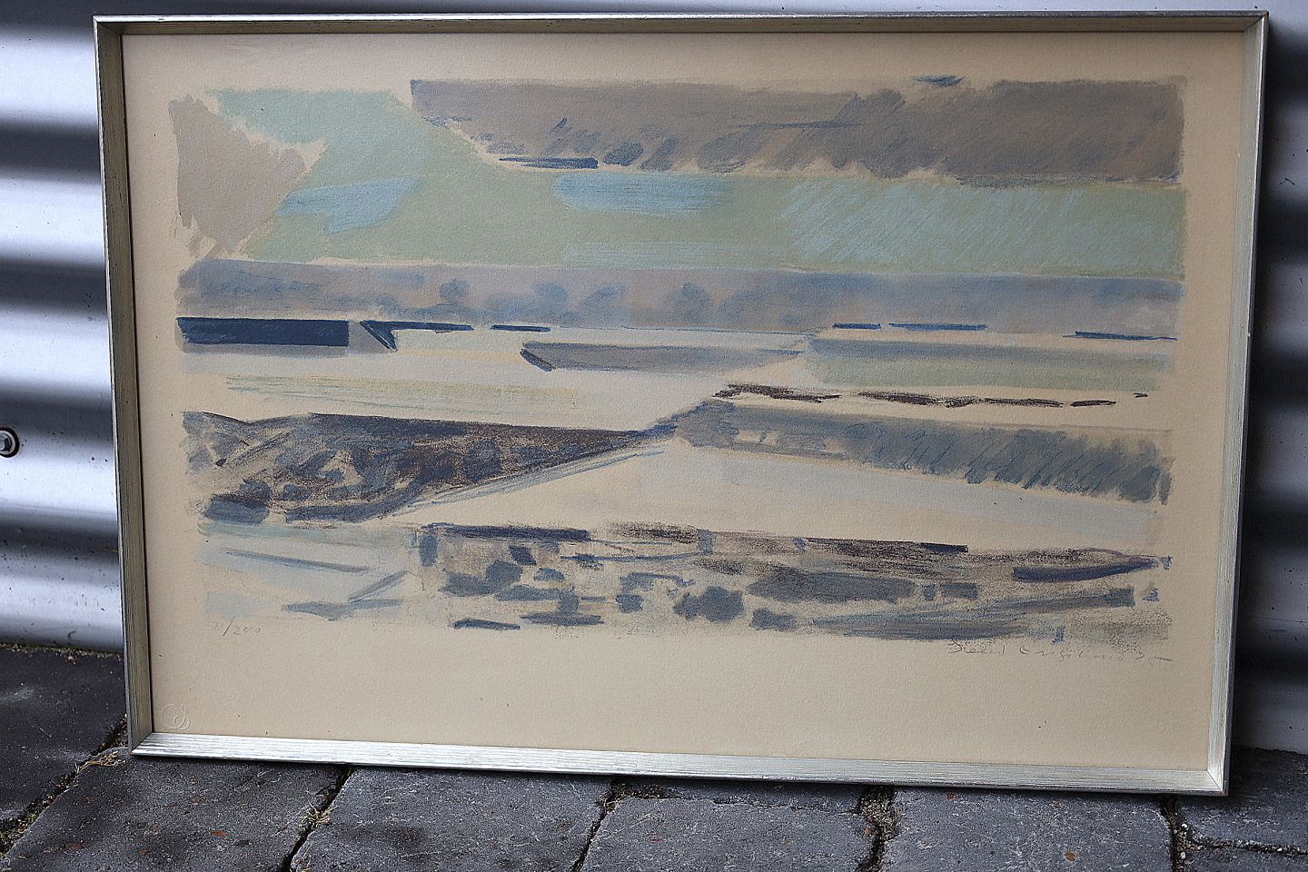 Kunstmaler Svend Engelund. Litografi, nr 50/200, åbent landskab, i pastel farver.