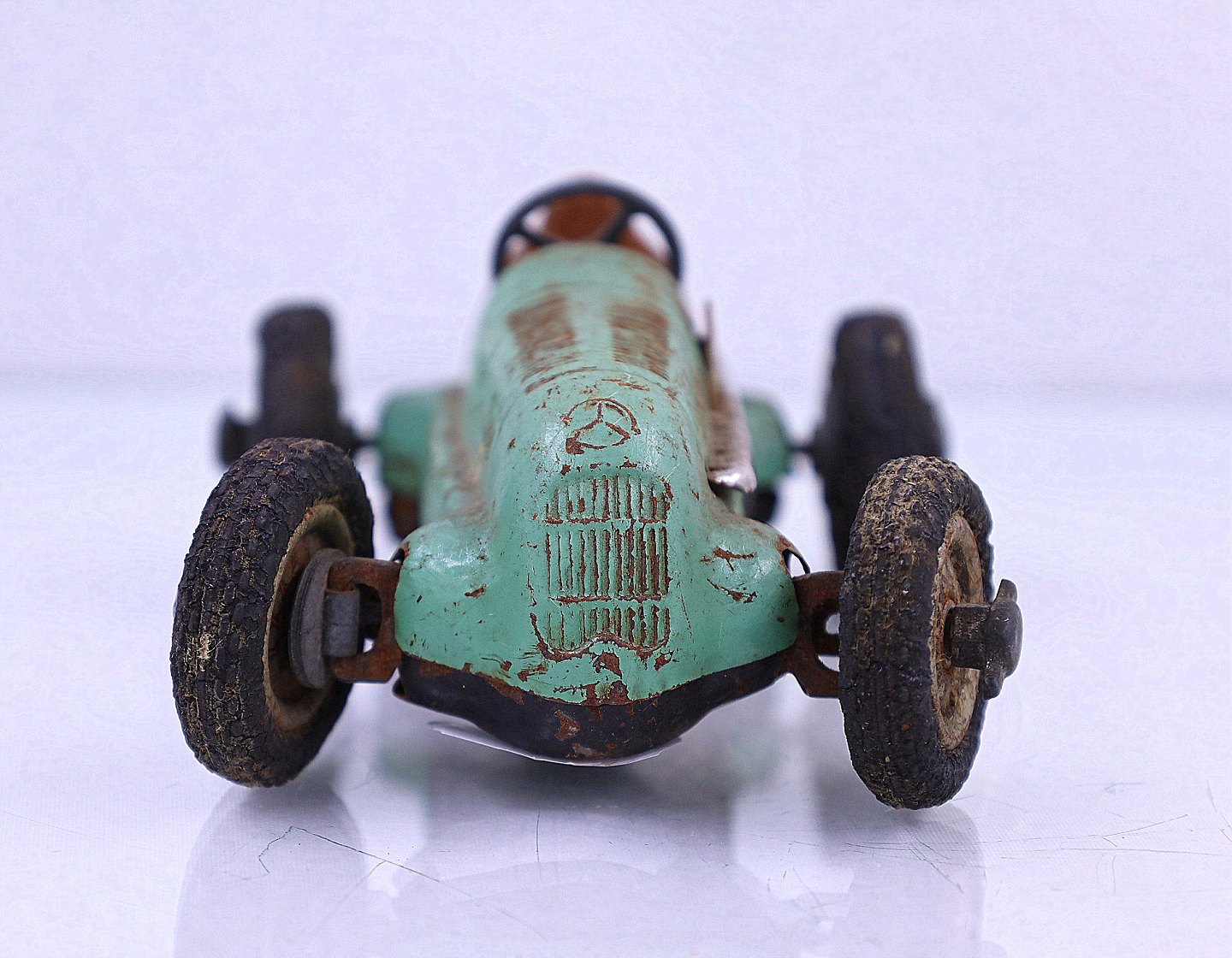 Schuco Studio. Grøn sportsvogn, Mercedes. Bilen er lavet af blik. Der er nummer og udstødning på den ene side.
