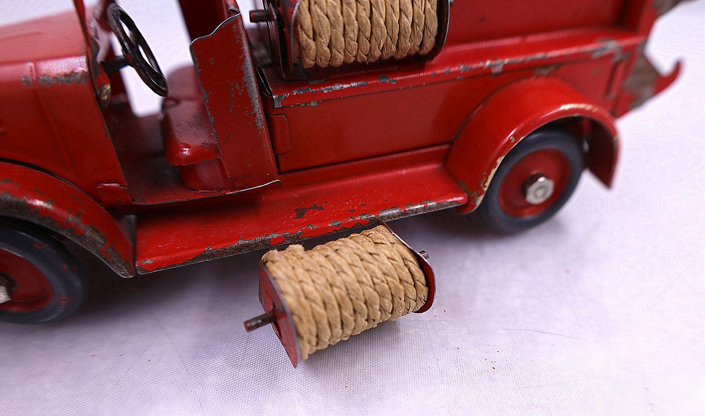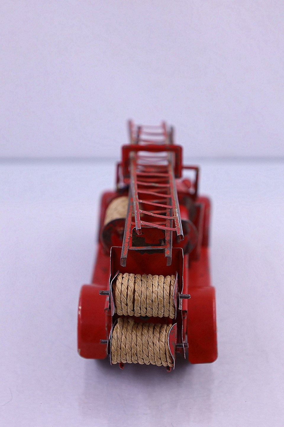 Falck Stige vogn. Stige vogn med aftagelige stiger. Tekno, Made in Denmark, bilen er lavet af blik. Der er brugsspor på bilen