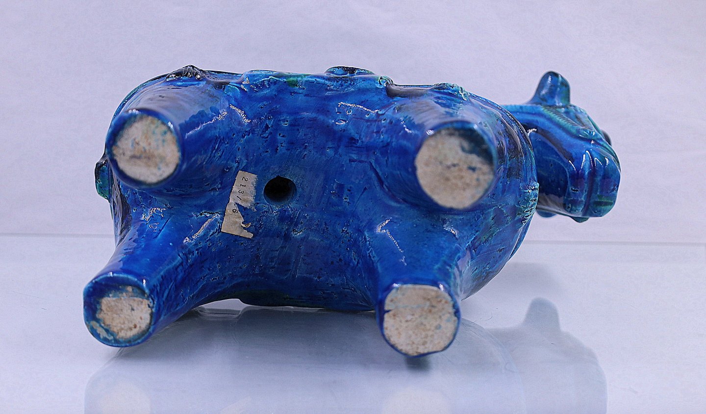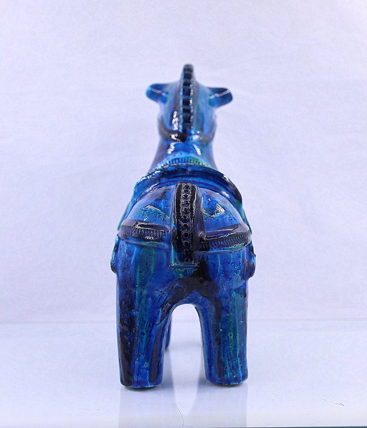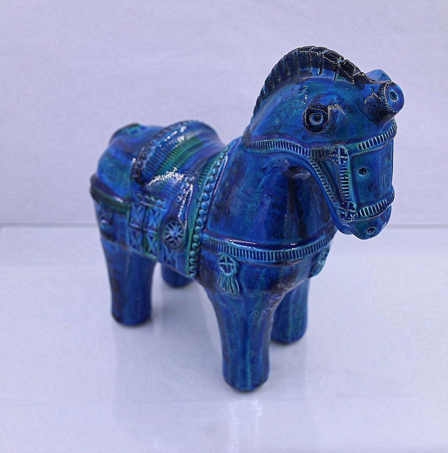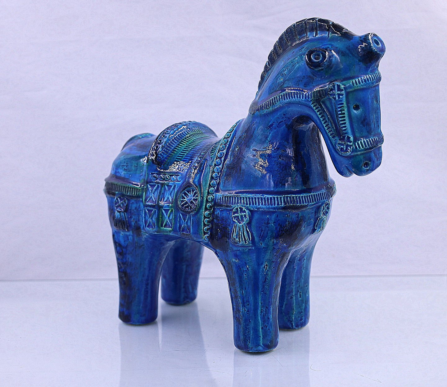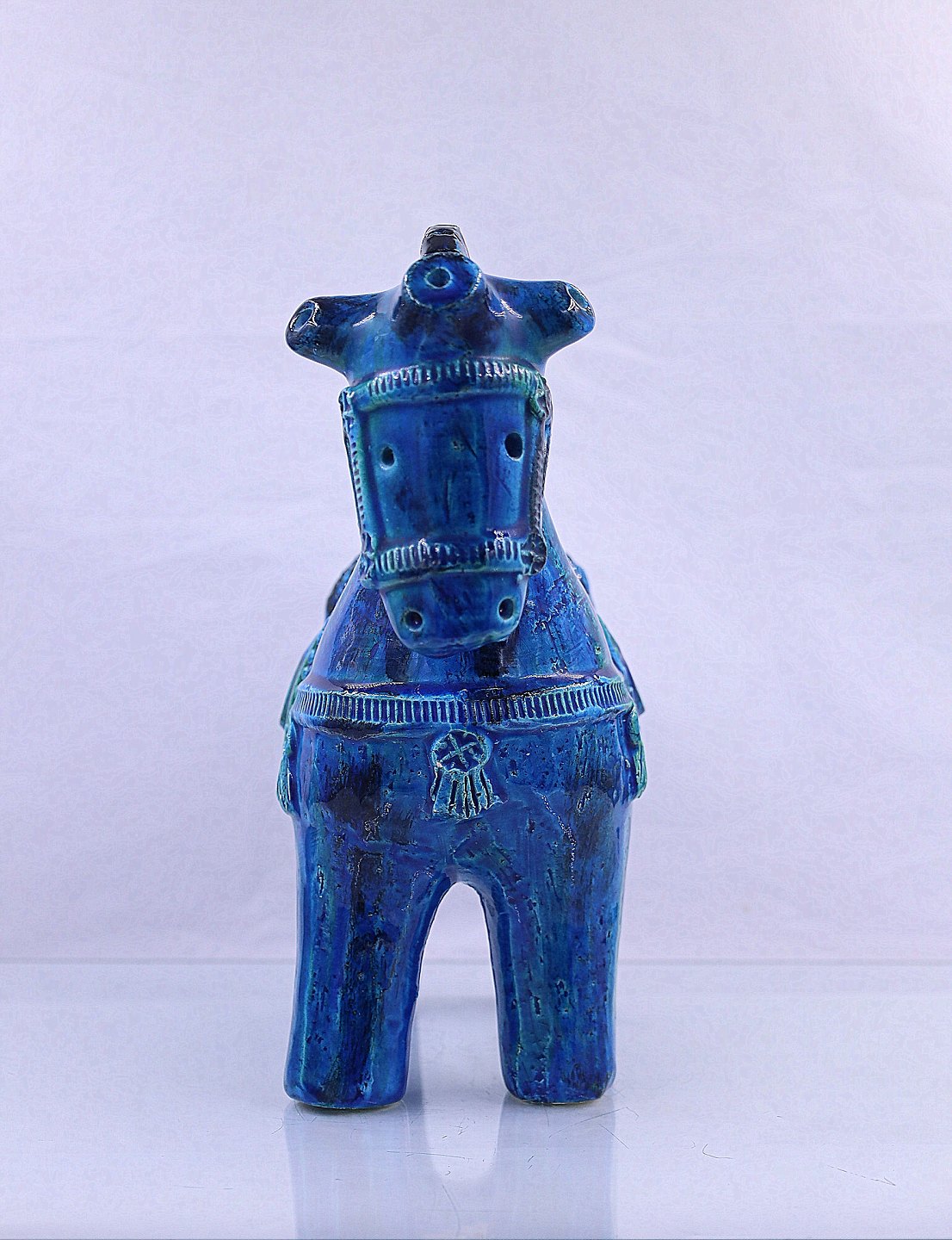 Blå hest af blå glaseret stentøj. Hesten er fra 1960`erne.