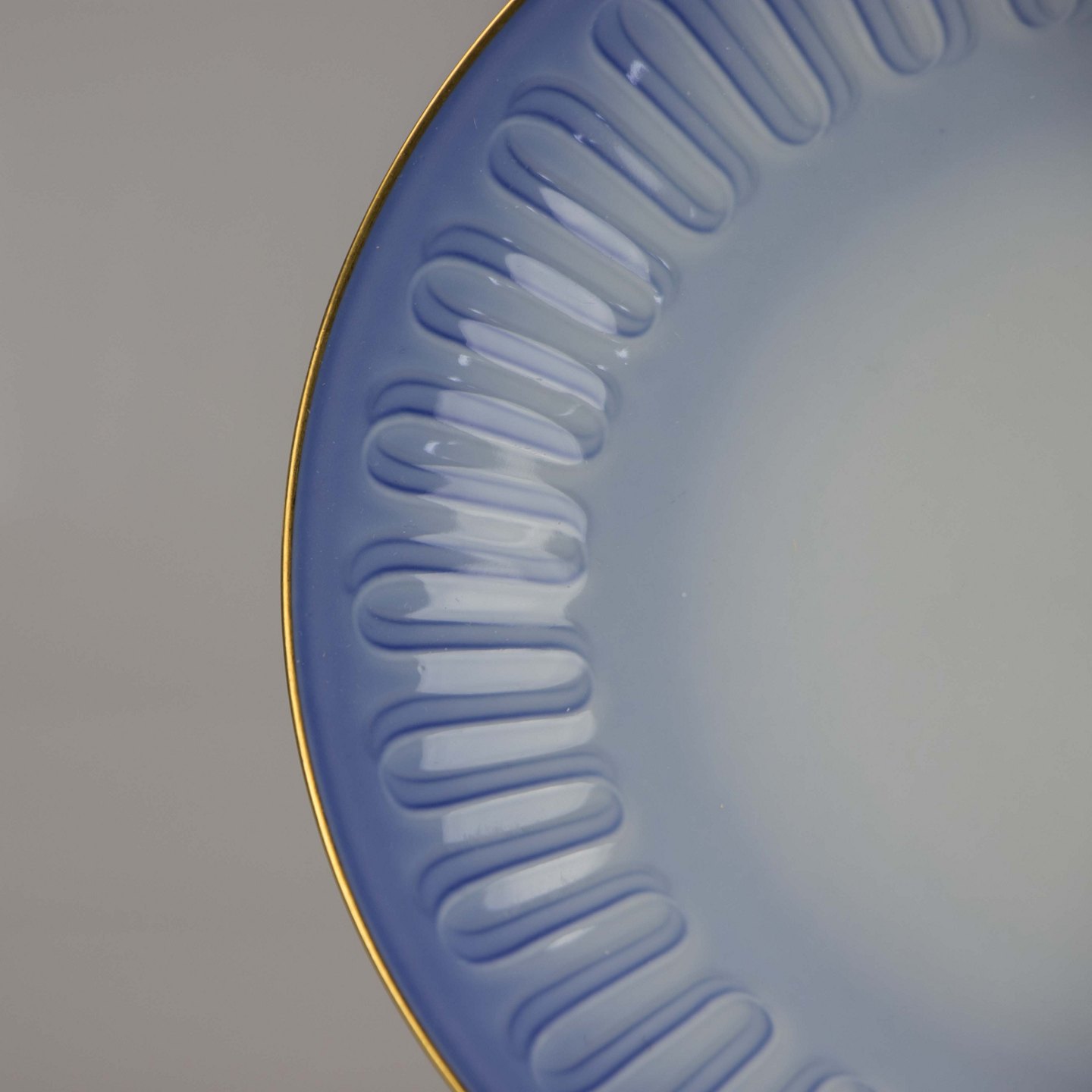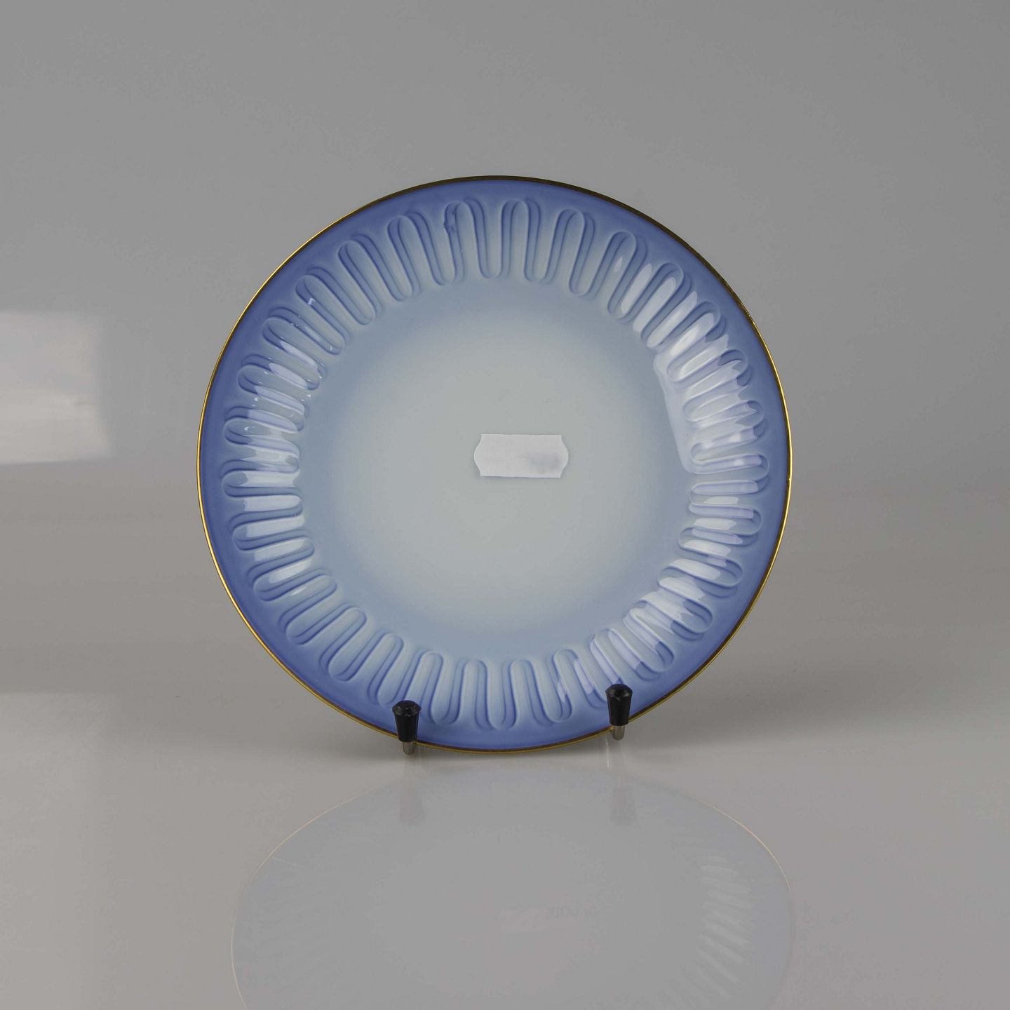 Tallerken fremstillet i porcelæn med stribet motiv i gradueret blå nuancer.