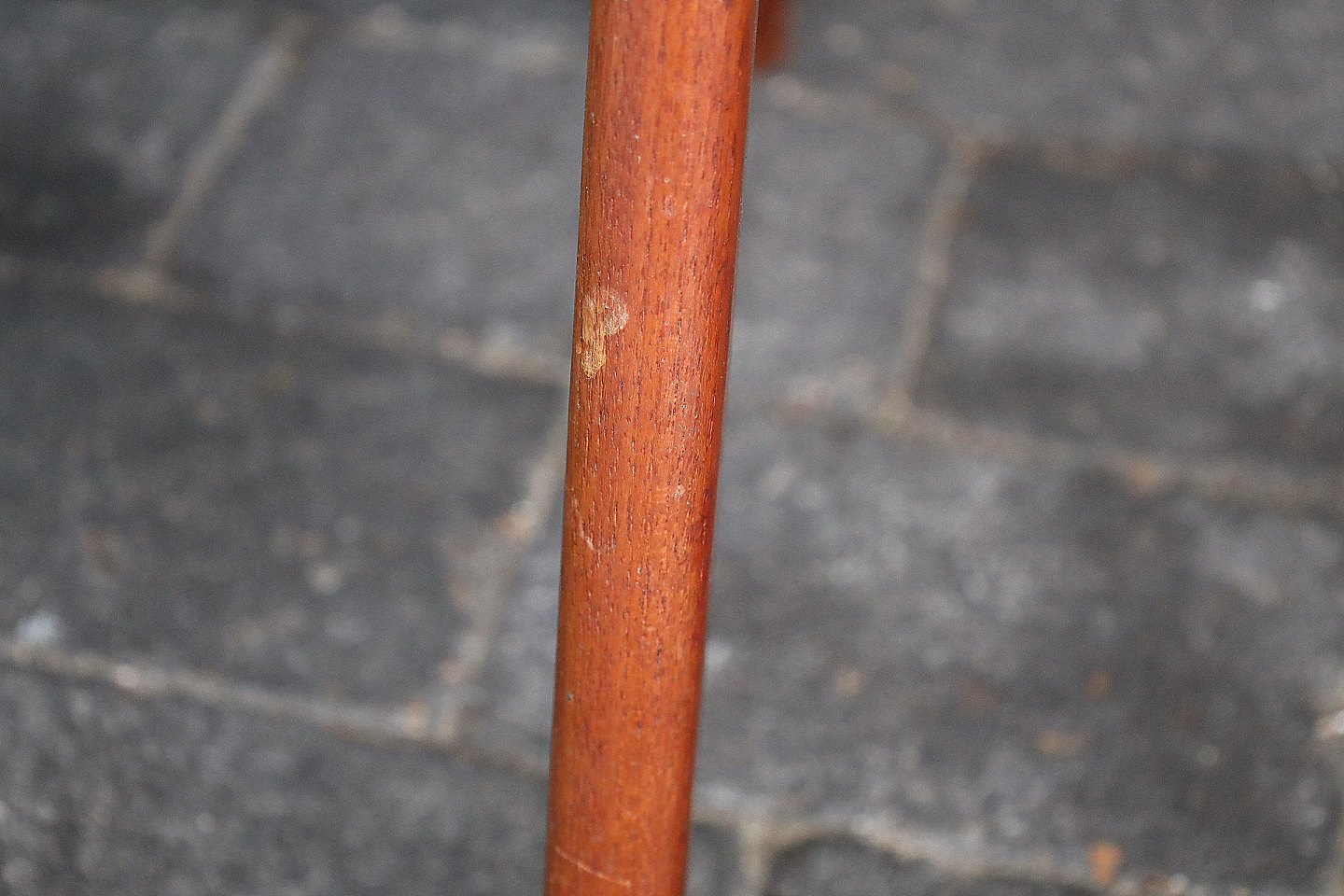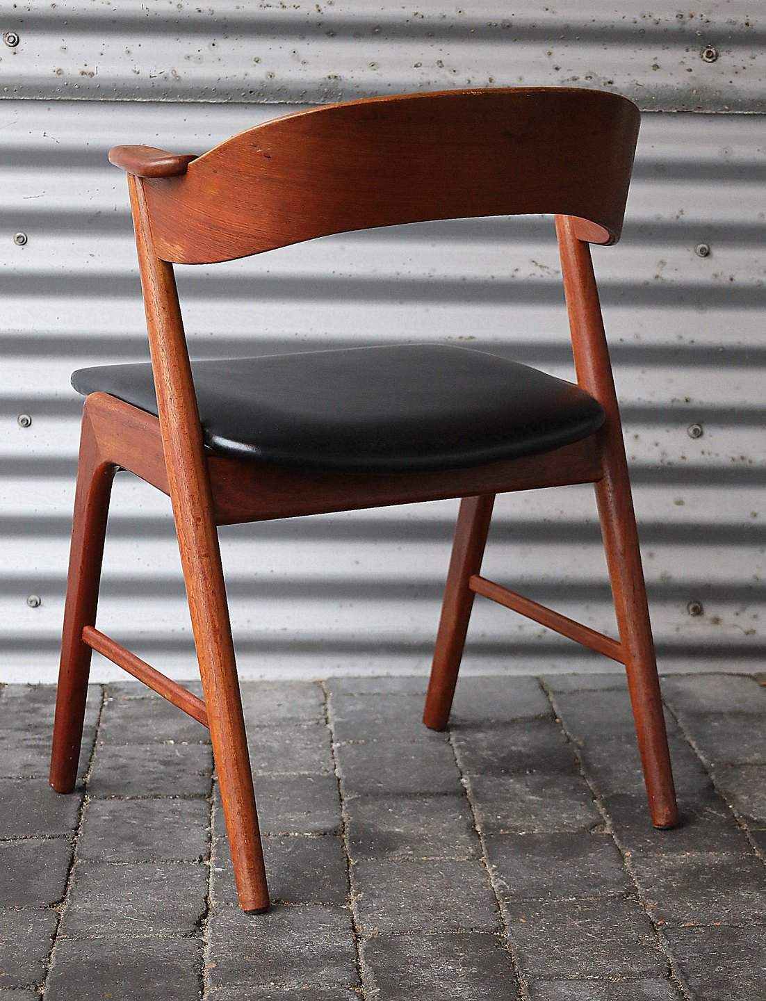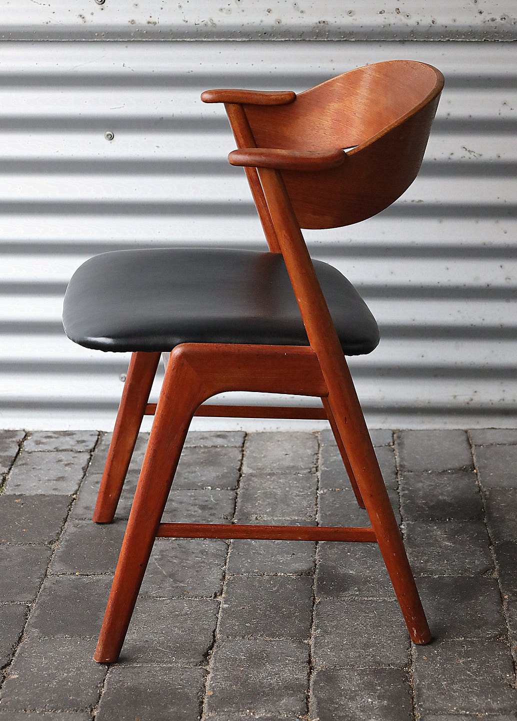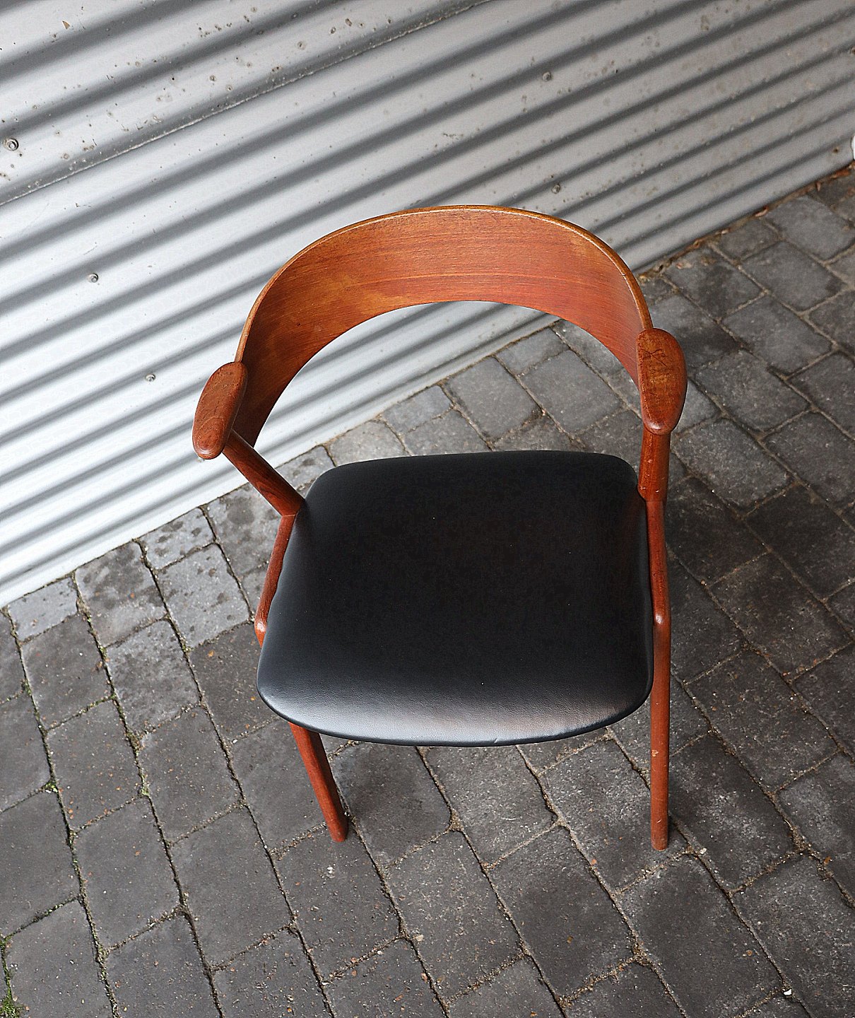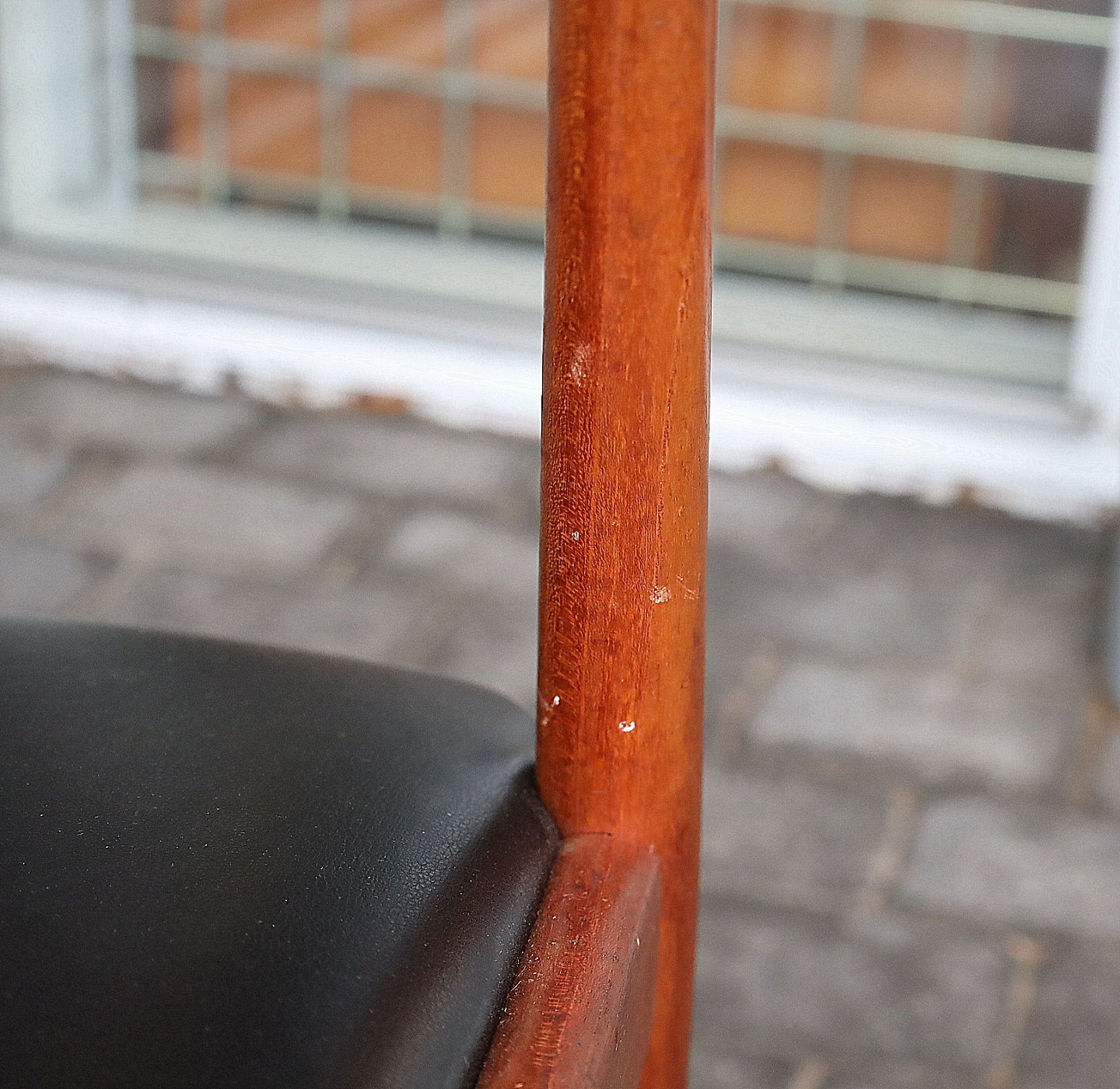 Korup Stole. Teaktræs stol med lædersæde, formspændt ryg og små armlæn. Samlet pris kr. 8000 for alle 4