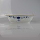 Kantet skål i hvidt porcelæn med guldkant med blå motiver af blomster og sommerfugle.